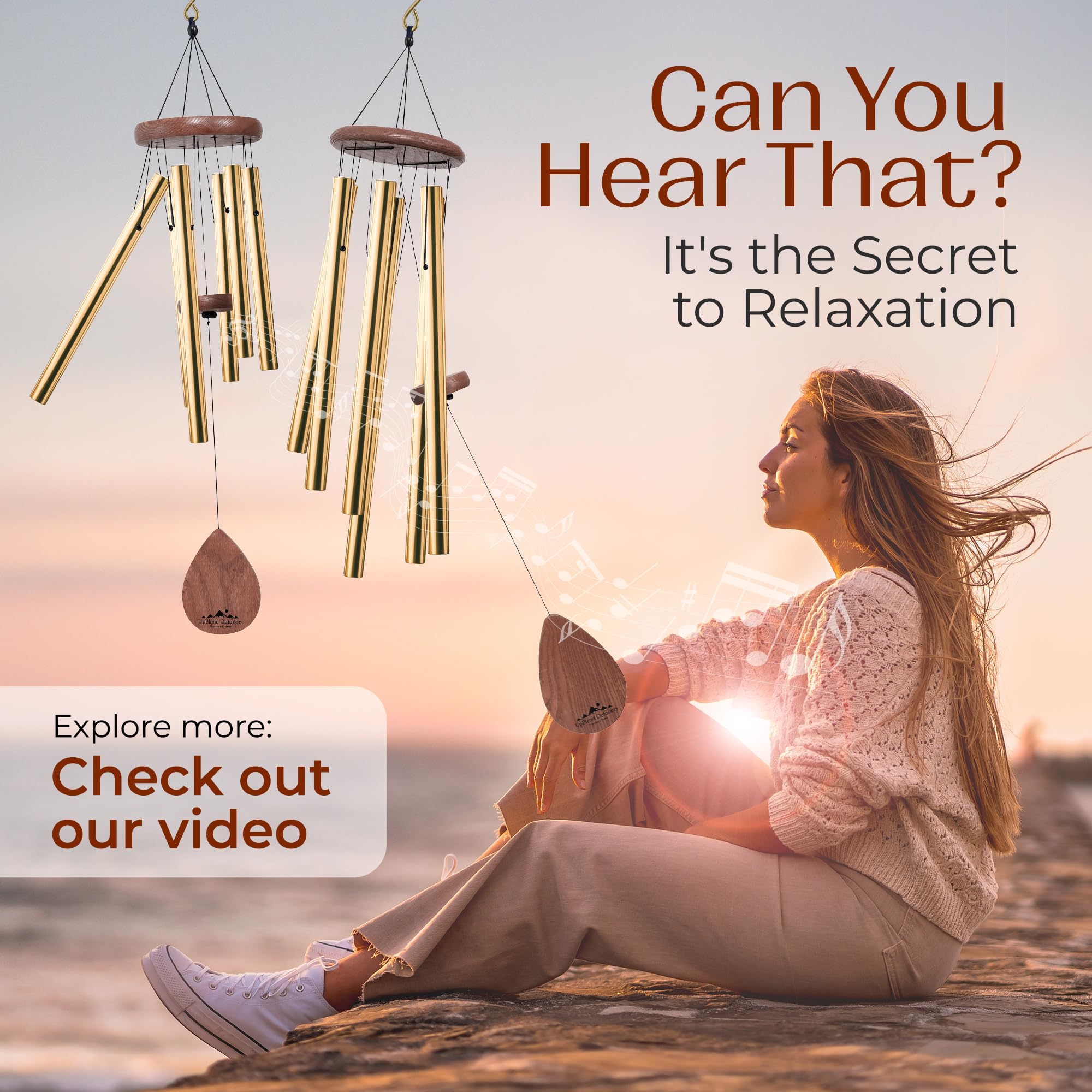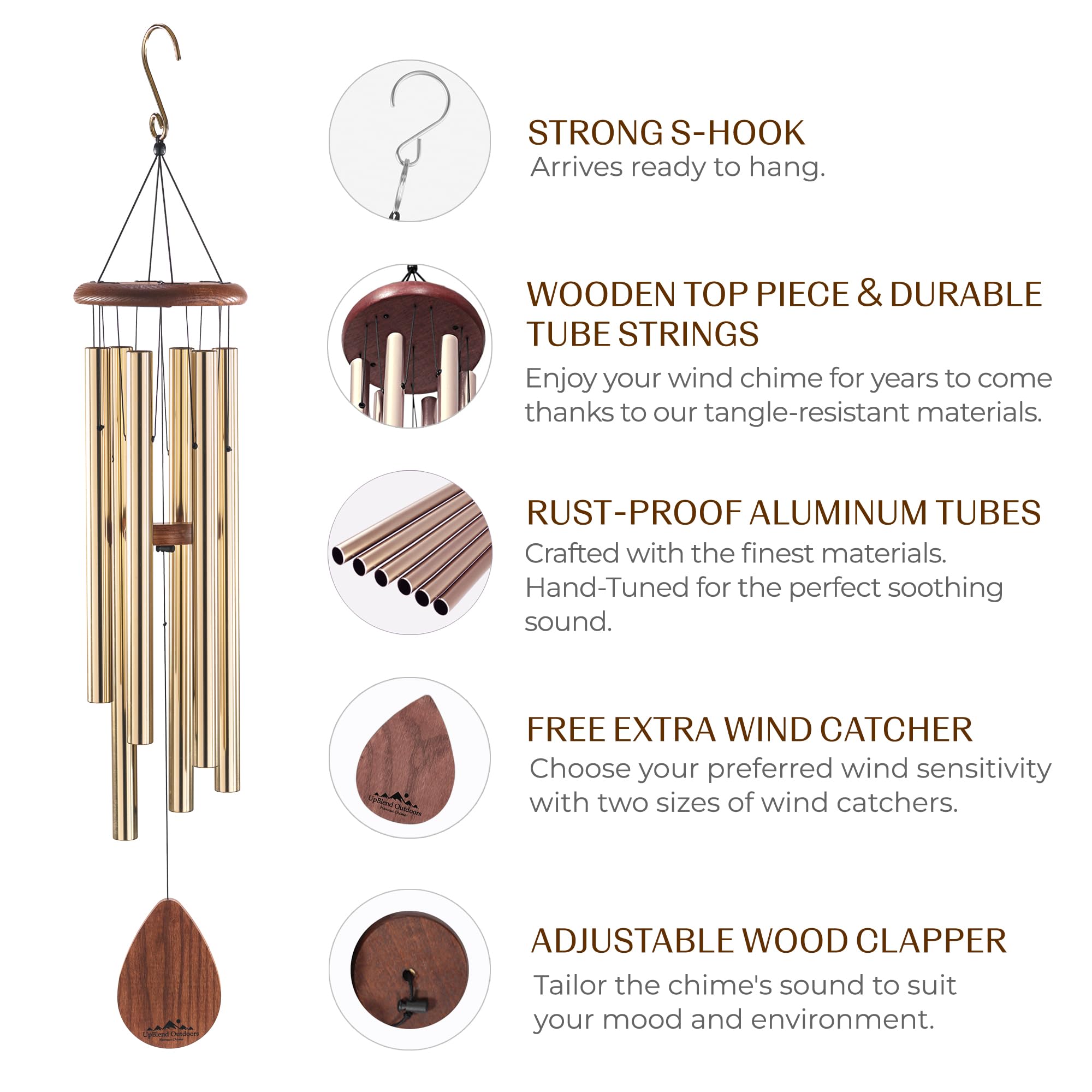UpBlend Outdoors Grosses Windspiel - das Klassische Havasu ist 96,5 cm Gesamtlänge - handgestimmt und schön als Geschenk oder für Ihre Terrasse, Garten und Aussendekoration