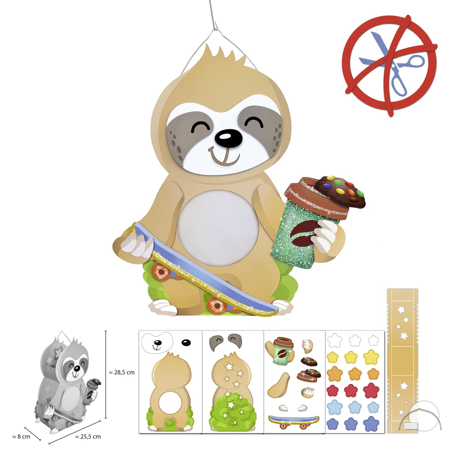 Ursus 187400003F - Laternen-Bastelset Faultier, Komplett-Set zum Selber-Basteln einer Laterne, inkl. Anleitung, ideal für Festumzüge oder als herbstliche Dekoration, Mittel, bunt