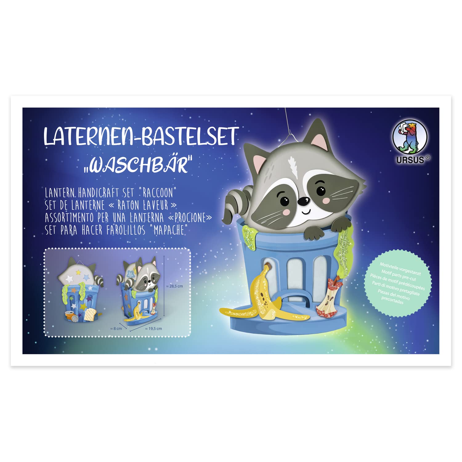 De herfsttijd is lantaarntijd. Ter voorbereiding op de Sankt Martins verhuizing, een lichtfeest of ook als decoratie voor Halloween hoort het knutselen van een lantaarn. De set bevat alles aan knutselmateriaal wat nodig is voor het ontwerpen van de afgebeelde lantaarn: 3 stansvellen (aan beide zijden bedrukt en gedeeltelijk gesplitst), 1 zijpaneel (aan beide zijden bedrukt en voorgestanst), 1 stansdeel transparant papier (wit), 1 lantaarndraagbeugel, kleefpads, incl. handleiding voor het decoreren en een gedetailleerde knutselhandleiding. De afgewerkte lantaarn is ca. 29 x 22 x 8 cm groot.Herbstzeit ist Laternenzeit. Zur Vorbereitung auf den Sankt Martins Umzug, ein Lichterfest oder auch als Deko für Halloween gehört das Basteln einer Laterne. Das Set enthält alles an Bastelmaterial, was zur Gestaltung der abgebildeten Laterne benötigt wird: 3 Stanzbögen (beidseitig bedruckt und teilweise beglittert), 1 Seitenteil (beidseitig bedruckt und vorgestanzt), 1 Stanzbogen Transparentpapier (einseitig bedruckt), 1 Stanzteil Transparentpapier (weiss), 1 Laternentragebügel, Klebepads, inkl. Bedienungsanleitung zum Dekorieren sowie eine detaillierte Bastelanleitung. Die fertige Laterne ist ca. 29 x 22 x 8 cm gross.Efterårstiden er lanternetid. Som forberedelse til Sankt Martins flytning, en lysfestival eller også som dekoration til Halloween, kan du lave en lanterne. Sættet indeholder alt det håndværksmateriale, der er nødvendigt for at designe den viste lanterne: 3 punsark (trykt på begge sider og delvist glimmeret), 1 sidedel (trykt og forudstanset på begge sider), 1 punsark gennemsigtigt papir (trykt på den ene side), 1 punsdel gennemsigtigt papir (hvidt), 1 lanternebøjle, klæbepuder, inklusive brugsanvisning til udsmykning og en detaljeret udsmykning håndværksvejledning. Den færdige lanterne er ca. 29 x 22 x 8 cm høj.Sonbahar zamanı fener zamanıdır. Noel Baba Martins taşınmasına hazırlık, ışık festivali veya cadılar bayramı için dekorasyon olarak fener el işi gereklidir. Set, gösterilen fener tasarımı için gerekli olan her şeyi içerir: 3 zımba kağıdı (çift taraflı baskılı ve kısmen parlatılmış), 1 yan parça (çift taraflı baskılı ve önceden kesilmiş), 1 şeffaf kağıt zımba kağıdı (tek tarafı baskılı), 1 şeffaf kağıt delikli parça (beyaz), 1 fener taşıma sapı, yapışkan pedler, dekorasyon için kullanım kılavuzu (Türkçe olmayabilir) ve ayrıntılı el işi kılavuzu (Türkçe olmayabilir) dahil. Hazır fener yaklaşık 29 x 22 x 8 cm büyüklüğündedir.Podzimní čas je doba lucerny. K přípravě na stěhování Sankt Martina, světelná slavnost nebo také jako dekorace na Halloween patří tvoření lucerny. Sada obsahuje vše, co je potřeba k vytvoření vyobrazené lucerny: 3 razicí archy (oboustranně potištěné a částečně roztříštěné), 1 boční díl (oboustranně potištěno a předražené), 1 děrovací list transparentního papíru (jednostranně potištěné), 1 vysekávací díl transparentního papíru (bílý), 1 ramínko na lucernu, lepicí podložky, vč. návodu k obsluze k dekoraci a podrobný návod k sestavení (český jazyk nelze zaručit). Hotová lucerna je cca 29 × 22 × 8 cm.Jesień to czas latarni. Do przygotowania do przeprowadzki Świętego Martina, na imprezę świetlną lub jako dekoracja na Halloween należy wykonać latarenkę. Zestaw zawiera wszystko, co jest potrzebne do wykonania przedstawionej latarni: 3 arkusze (zadrukowane po obu stronach), 1 część boczna (zadrukowane po obu stronach i wstępnie wytłoczone), 1 arkusz do wykrawania przezroczysty papier (zadrukowany jednostronnie), 1 część tłoczenia przezroczystego papieru (biały), 1 uchwyt do noszenia latarni, podkładki samoprzylepne, w zestawie instrukcja obsługi (może nie być dostępna w języku polskim) do dekoracji oraz szczegółowa instrukcja obsługi (może nie być dostępna w języku polskim). Gotowa latarnia ma ok. 29 x 22 x 8 cm.Autumn time is lantern time. To prepare for Saint Martin's move, a light festival or even as a decoration for Halloween includes crafting a lantern. The set contains all the craft material needed to design the lantern shown: 3 punching sheets (printed on both sides and partially glittered), 1 side panel (printed on both sides and pre-punched), 1 punching sheet of tracing paper (printed on one side), 1 punching part tracing paper (white), 1 lantern carrier, adhesive pads, including instructions for decorating and detailed craft instructions. The finished lantern is approx. 29 x 22 x 8 cm.