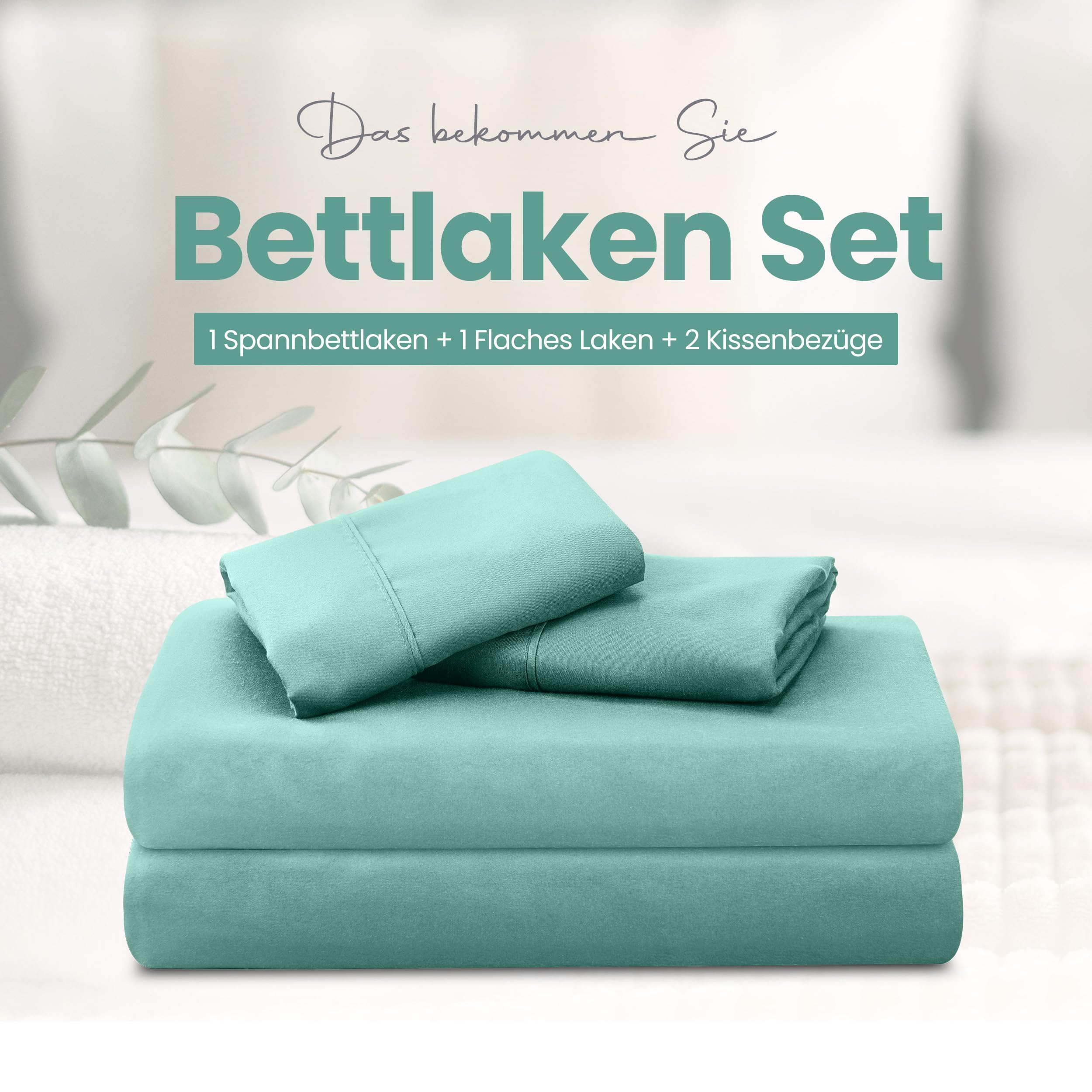 Utopia Bedding 4 Teilige Bettlaken Set 150x200 cm, Spa Blau - Polyester Microfaser, Oeko-Tex Zertifiziert, 1 Spannbettlaken 150x200 cm, 1 Bettlaken 266x259 cm und 2 Kissenbezüge 50x75 cm