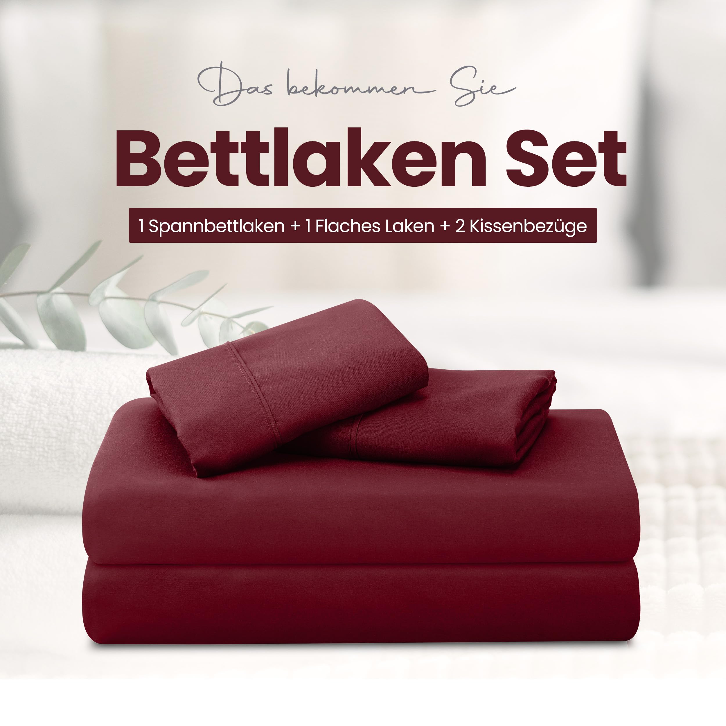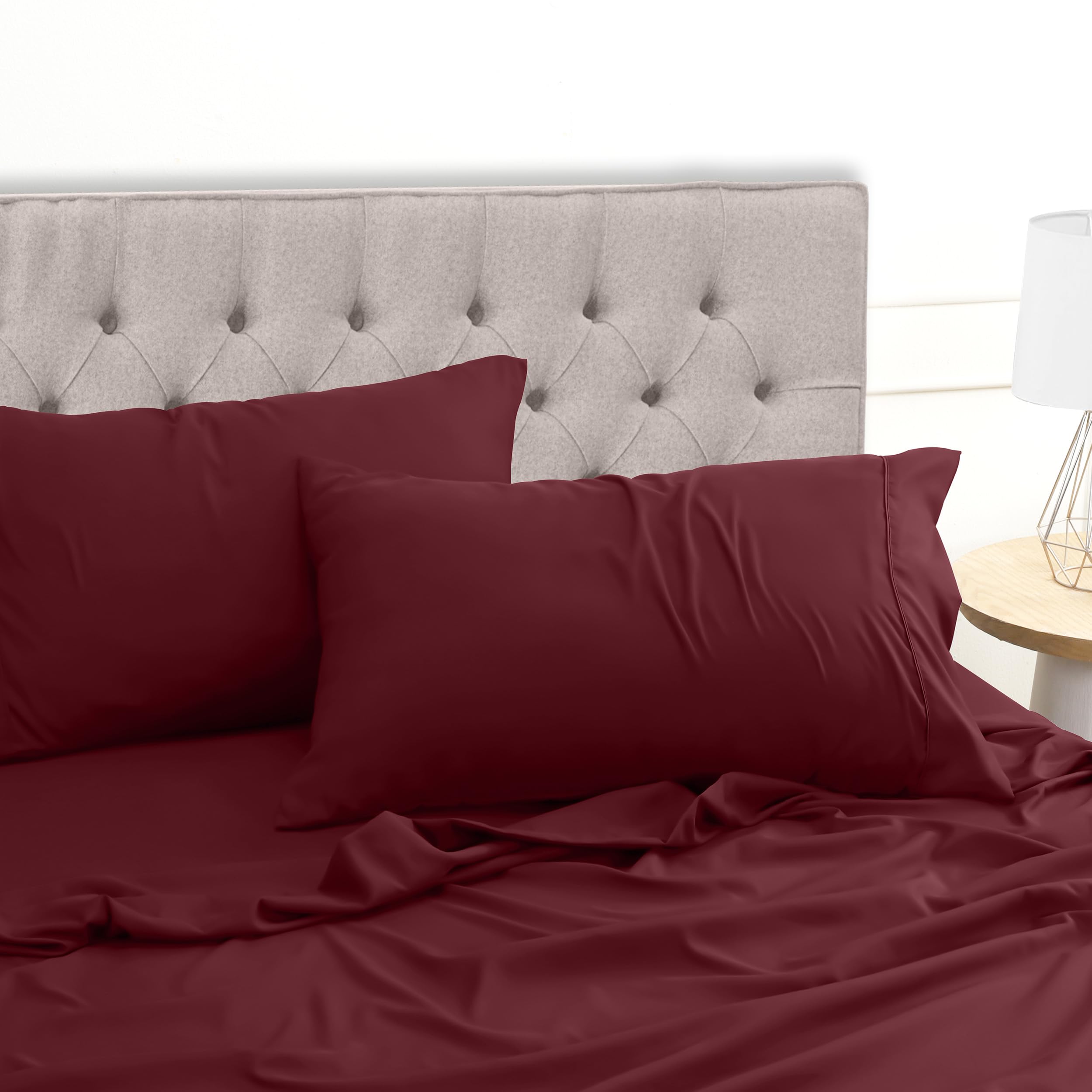 Utopia Bedding 4 Teilige Bettlaken Set 150x200 cm, Burgunderrot - Polyester Microfaser, Oeko-Tex Zertifiziert, 1 Spannbettlaken 150x200 cm, 1 Bettlaken 266x259 cm und 2 Kissenbezüge 50x75 cm