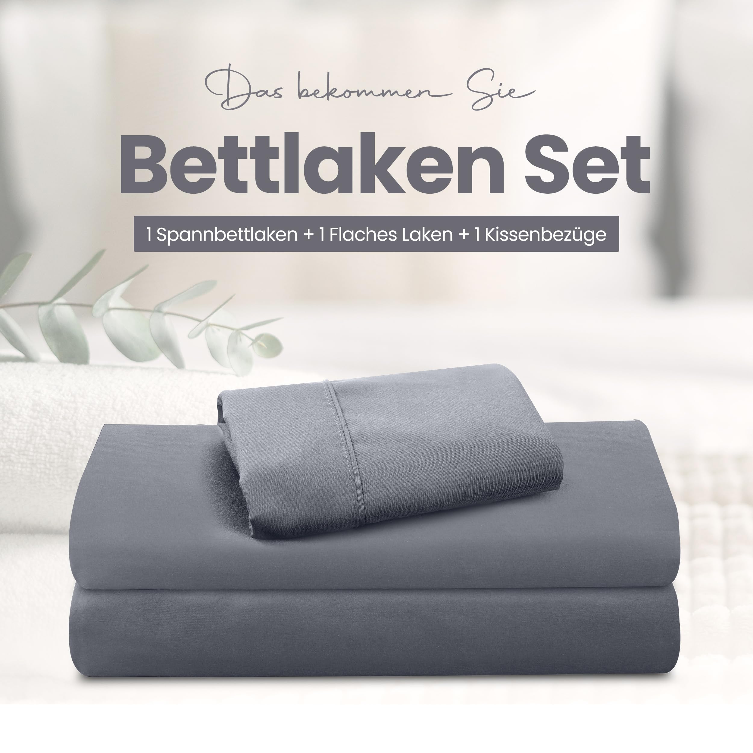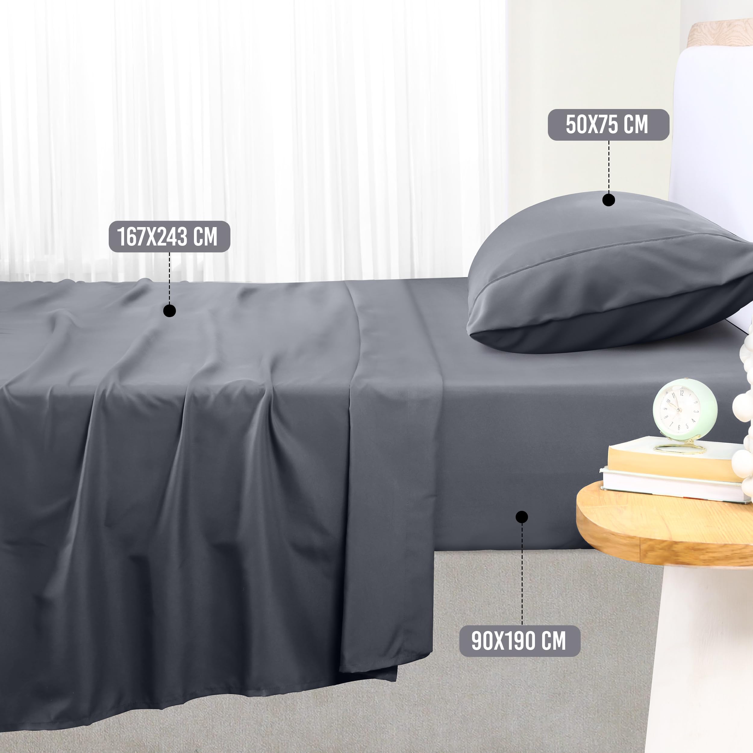 Utopia Bedding 4 Teilige Bettlaken Set 180x200 cm, Grau - Polyester Microfaser, Oeko-Tex Zertifiziert, 1 Spannbettlaken 180x200 cm, 1 Bettlaken 270x290 cm und 2 Kissenbezüge 50x75 cm