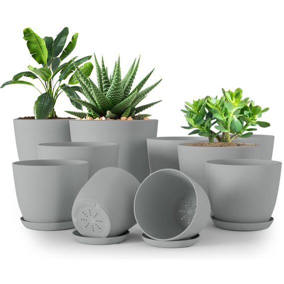Utopia Home 10er-Pack Blumentopf 18/17/15/13/12 cm Übertopf mit Untertasse Für Küche, Balkon Blumentöpfe mit Untertasse Gartenpflanzen Sukkulenten, Baumschule Blumentopf für Zimmerpflanzen Grau.