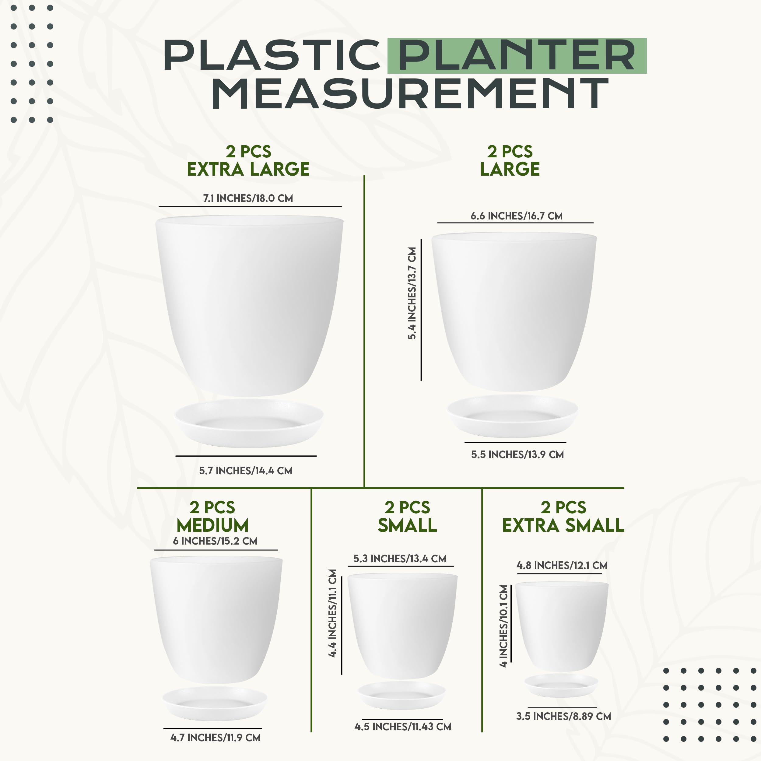 Utopia Home 10er-Pack Blumentopf 18/17/15/13/12 cm Übertopf mit Untertasse Für Küche, Balkon Blumentöpfe mit Untertasse Gartenpflanzen Sukkulenten, für Zimmerpflanzen Weiss.