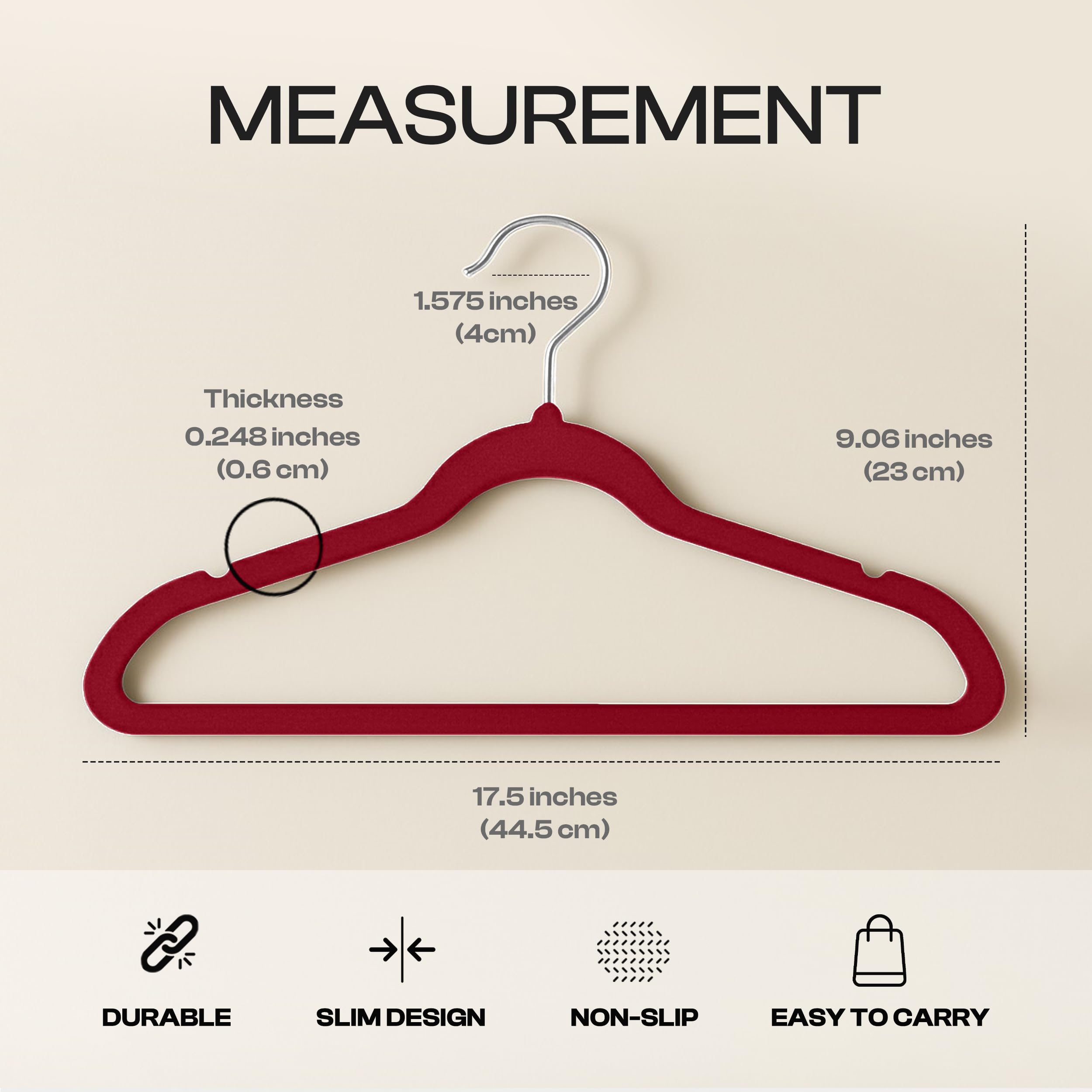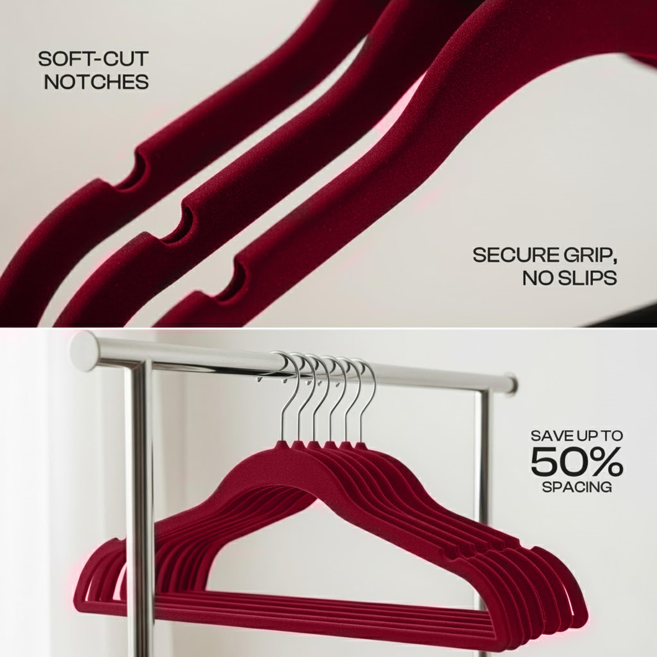Utopia Home Premium Samt Kleiderbügel - rutschfeste & langlebige Kleiderbügel - 360 Grad drehbare Haken - Hochbelastbare Kleiderbügel - 20er Pack, Burgund