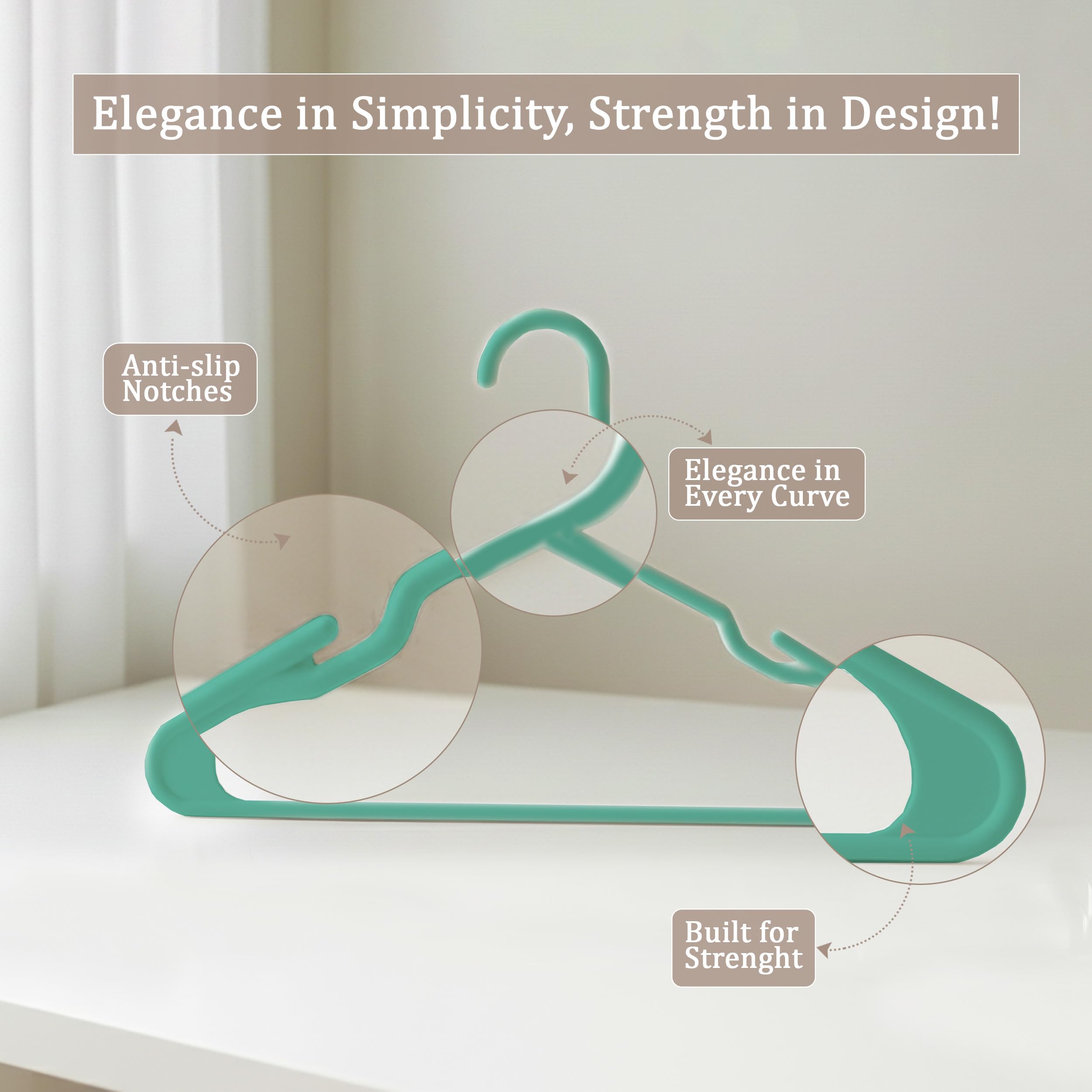 Utopia Home 50er-Pack Kunststoffbügel Platzsparende, langlebige Bügel mit Schulterrillen, Aqua