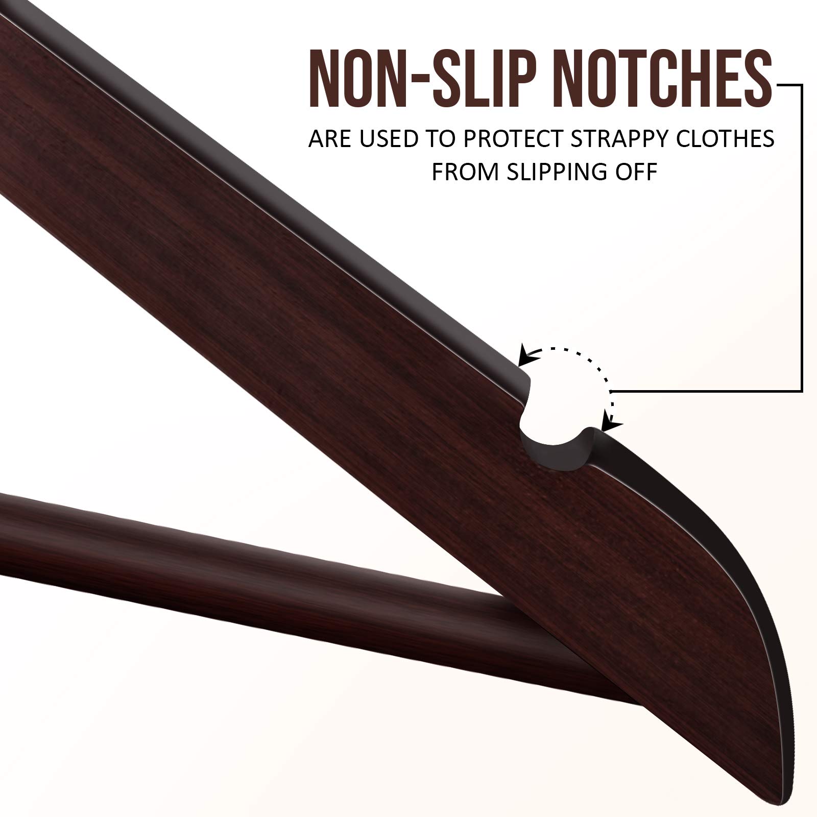 Utopia Home Rutschfeste Premium-Holz-Kleiderbügel mit runder Hosenstange und Schulterrillen – 360 Grad drehbarer Haken, langlebig & schmal, Anzug, Hose, Jacke Kleiderbügel (Walnuss-Finish, 20erPack)
