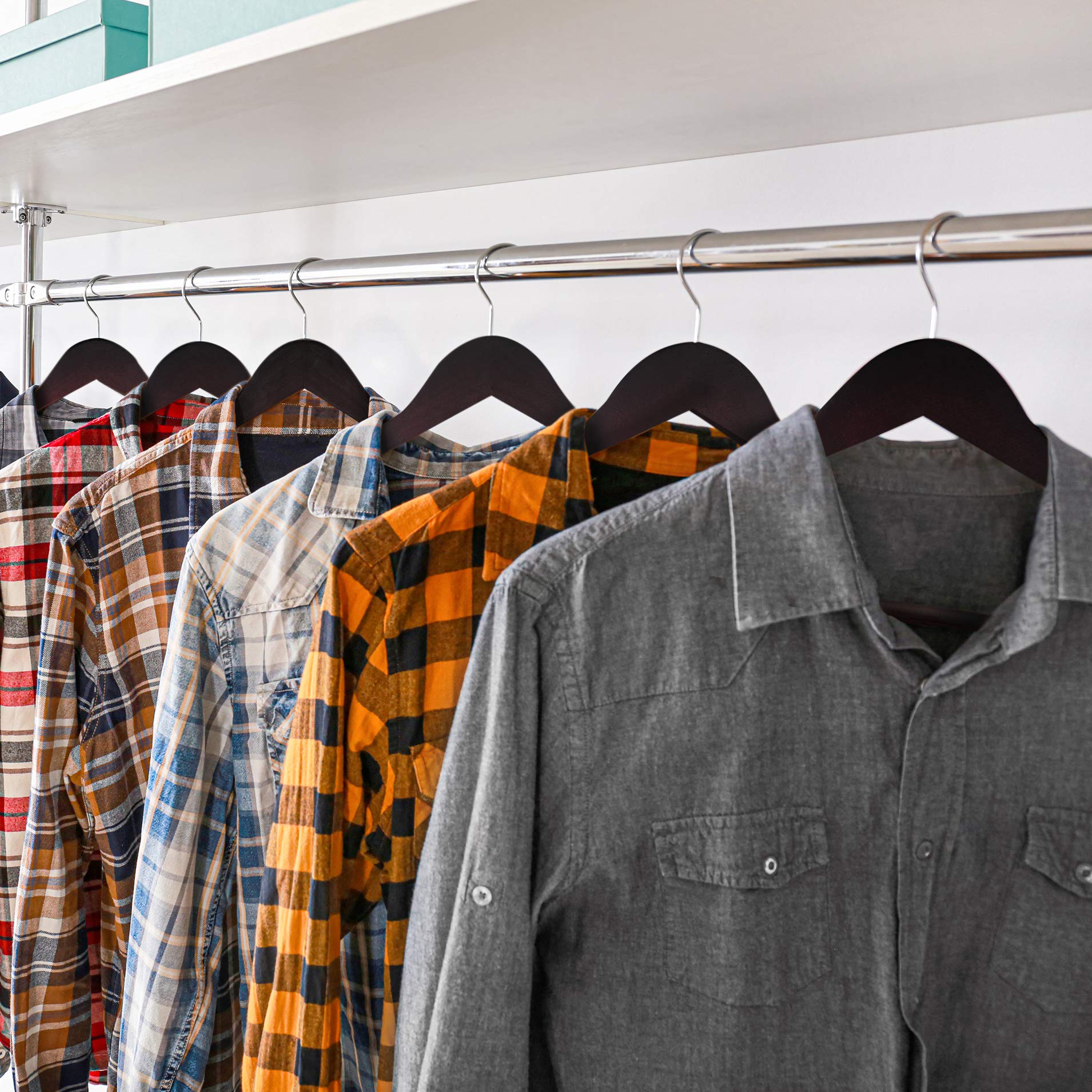 Utopia Home Holzkleiderbügel mit 360-Grad-Drehhaken, ist ein Satz von hochwertigen Kleiderbügeln, die aus natürlichem, gemischtem Holz mit einem polierten Aussehen, heller Farbe und einer glatten Oberfläche gemacht sind. Diese Kleiderbügel sind auf Robustheit und Langlebigkeit ausgelegt und können schwere Kleidungsstücke wie Hosen, Mäntel, Jacken, Anzüge und Röcke über einen langen Zeitraum tragen, während sie dabei ihr glänzendes Aussehen behalten. Die Höhe dieser Kleiderbügel geht bis zu 21.5 cm. . Beide Seiten haben eine kleine Einkerbung zum Aufhängen von leichten Kleidungsstücken wie Unterwäsche oder Trägerhemden. Mit diesen Kleiderbügeln sparen Sie nicht nur viel Platz in Ihrem Kleiderschrank, sondern auch Zeit beim Ordnen der Kleidung. Mit Hilfe des drehbaren Hakens können Sie leicht manövrieren und zwischen Ihren Kleidungsstücken wählen.