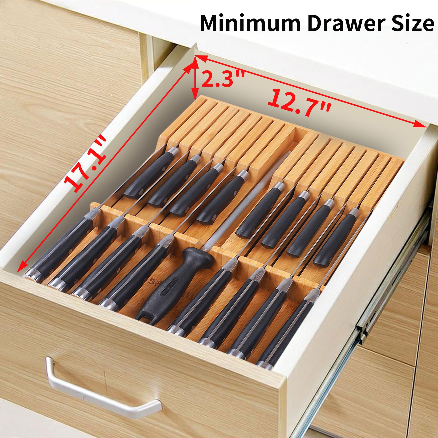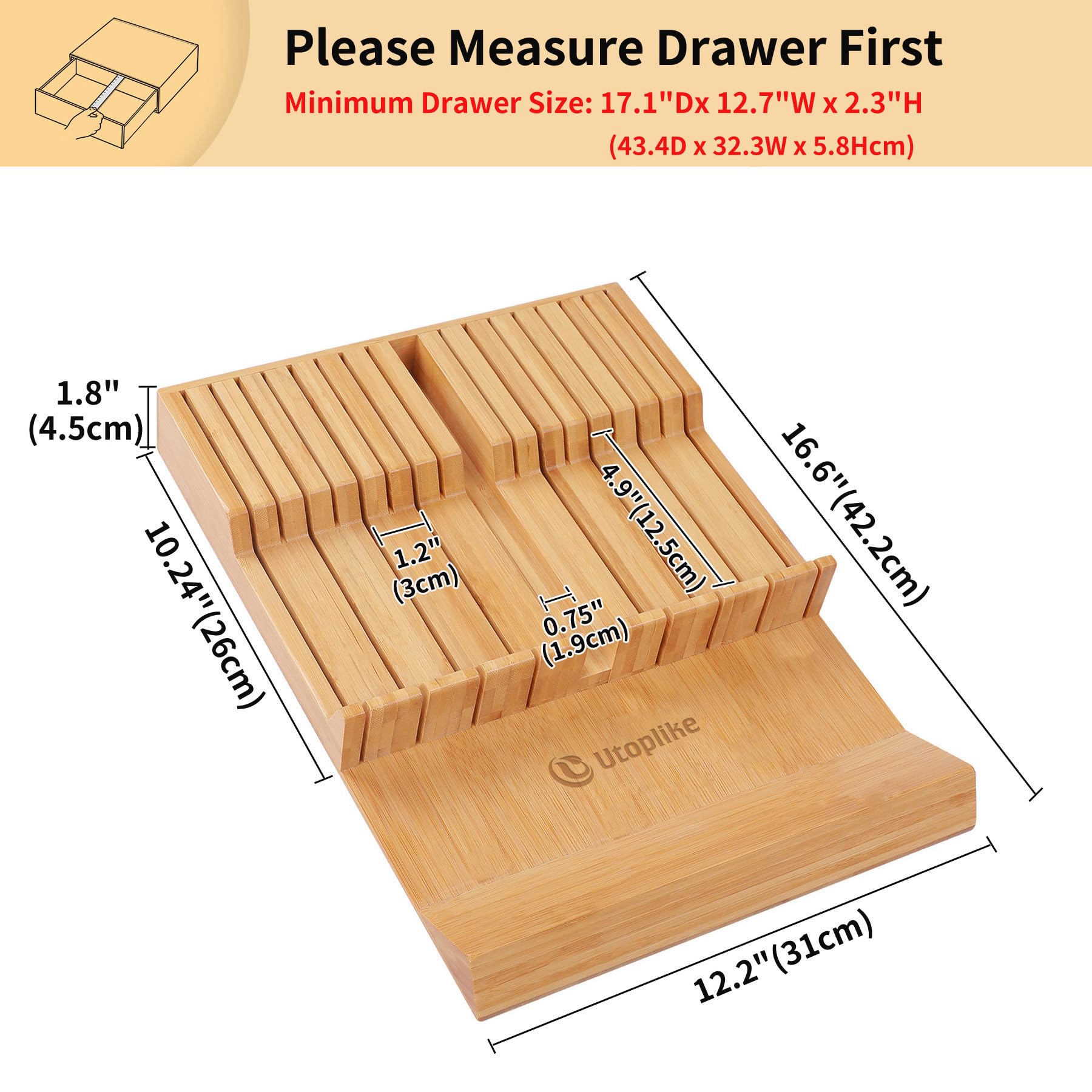 Utoplike Messerblock für die Schublade Bambus-Küchenmesser-Schubladenorganizer gross, mit Griff Steakmesserhalter ohne Messer, passend für 16 Messer und 1 Wetzstahl