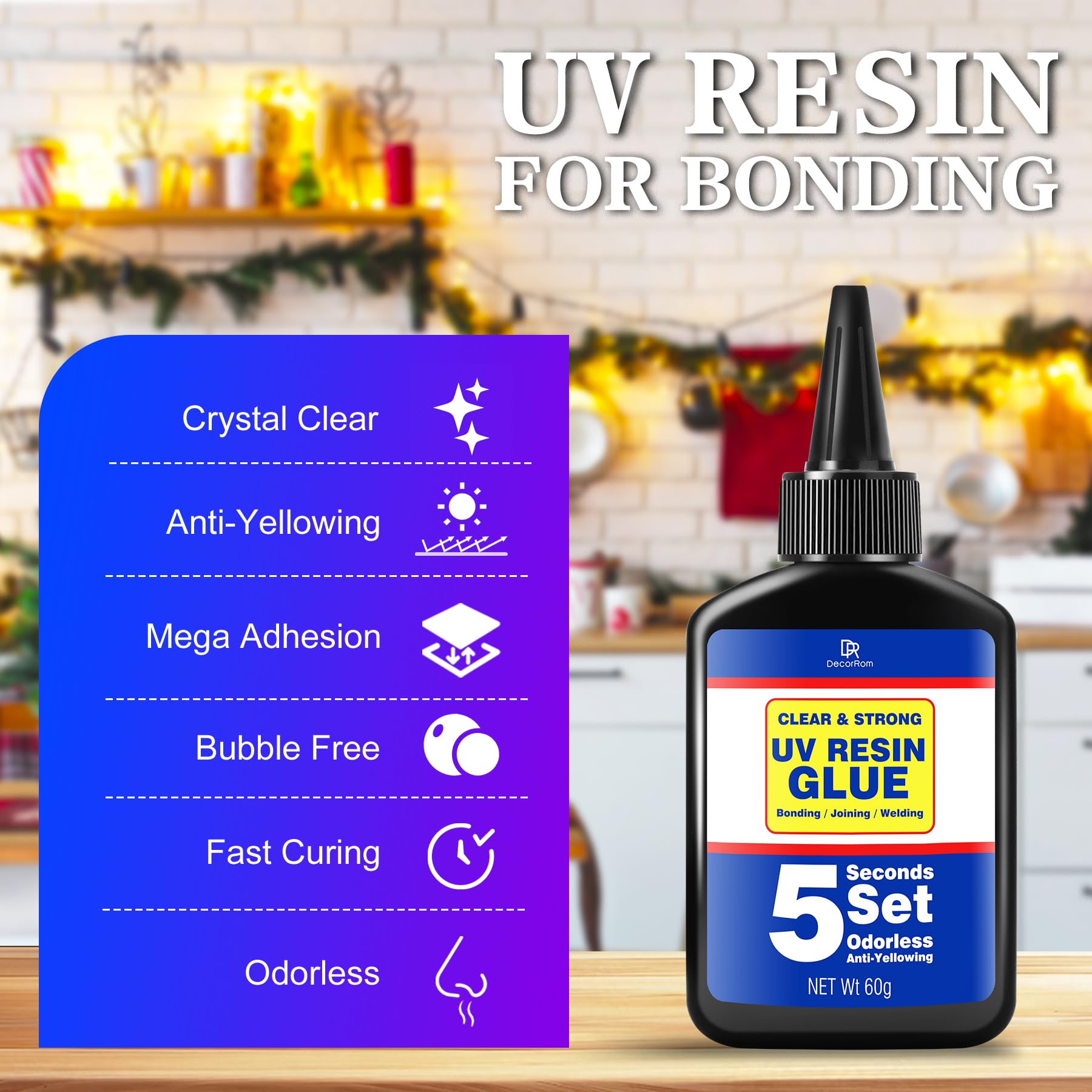 UV Harz mit Lampe - 60g UV Kleber mit wiederaufladbarer LED Taschenlampe - 5 Sekunden Schnellhärtung für Schmuck, Glas, Kunststoff & Harz, Transparenter UV (60g)