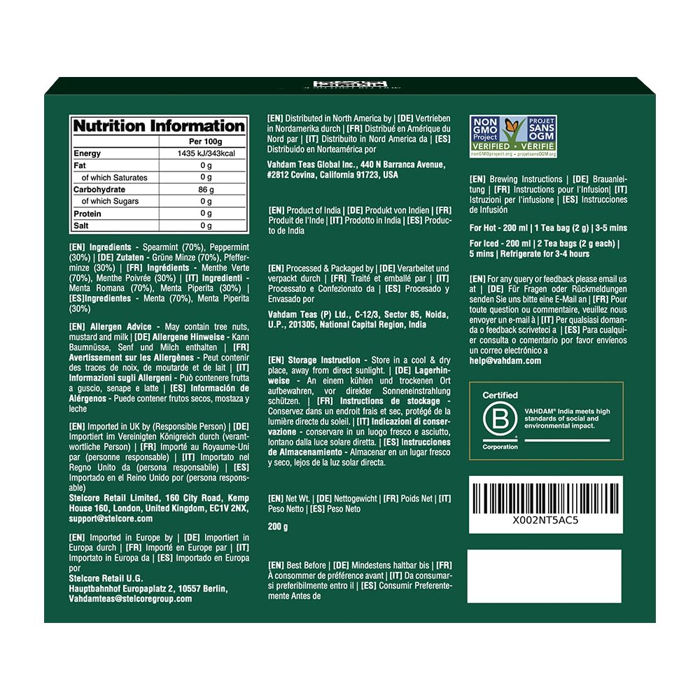 VAHDAM, Pure Mint Kräutertee Beutel (100 Teebeutel) Koffeinfrei | 100% natürliche Zutaten - Pfefferminze, Krauseminze | Minzteebeutel