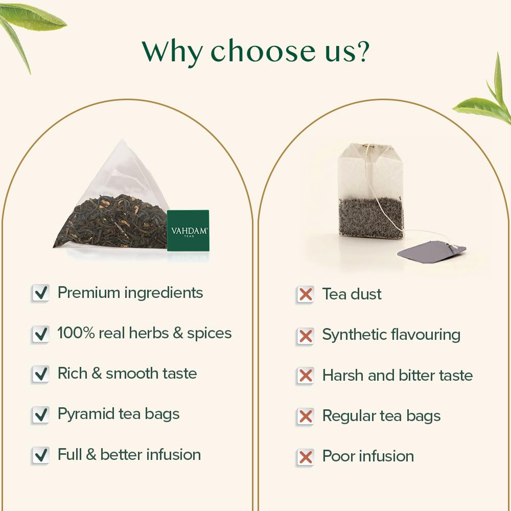 VAHDAM, English Breakfast Schwarzer Tee (30 Teebeutel) | Starker & Kräftiger Englischer Tee | Hoher Koffeingehalt, Glutenfrei | Abgefüllt in Indien | Pyramidenteebeutel