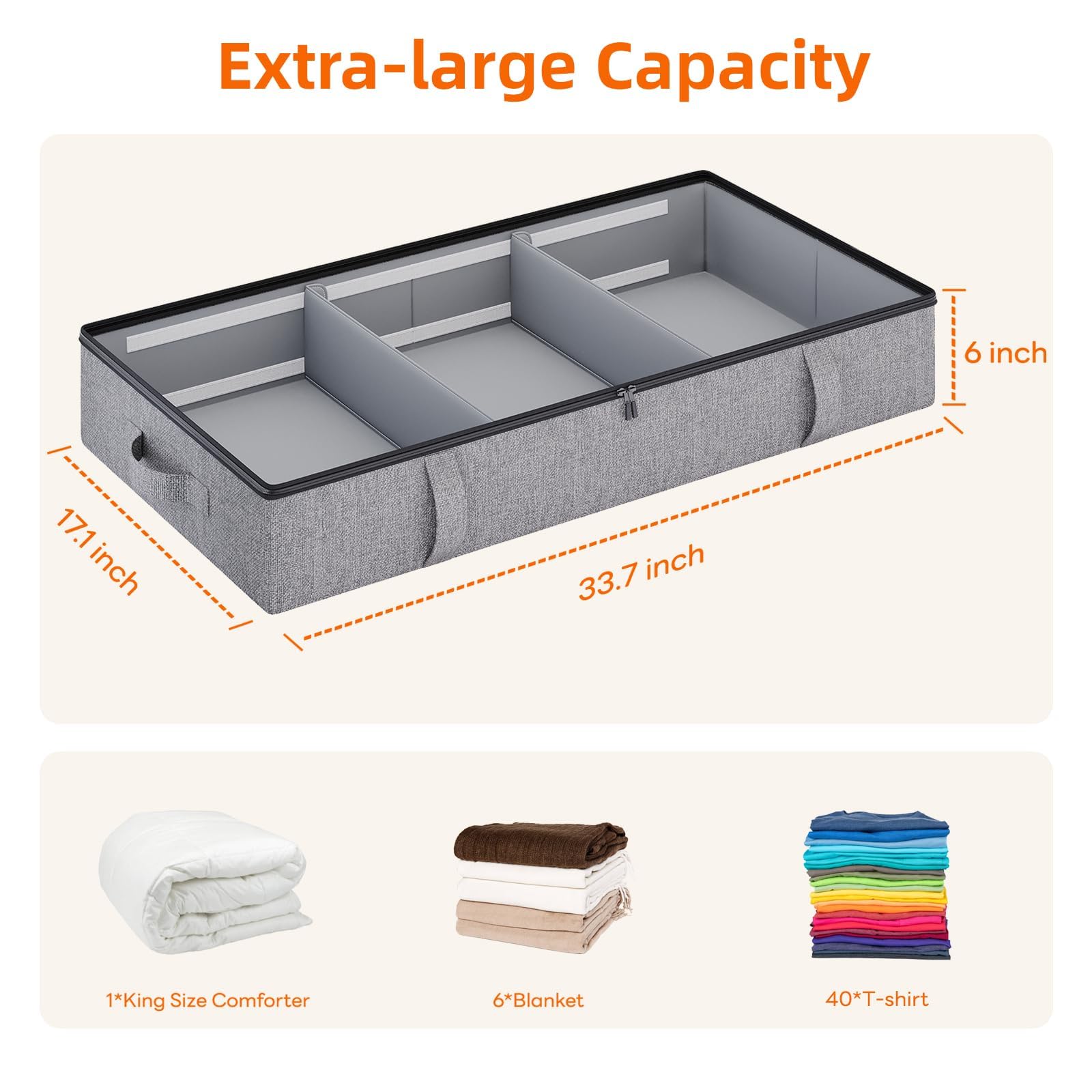 Vailando Unterbett-Aufbewahrungstaschen, Organizer (2 Stück), Stoff mit Reissverschluss, grosse Kapazität, Aufbewahrungsbox für Decken, stabile Aufbewahrungskörbe mit verstärkten Griffen, grau