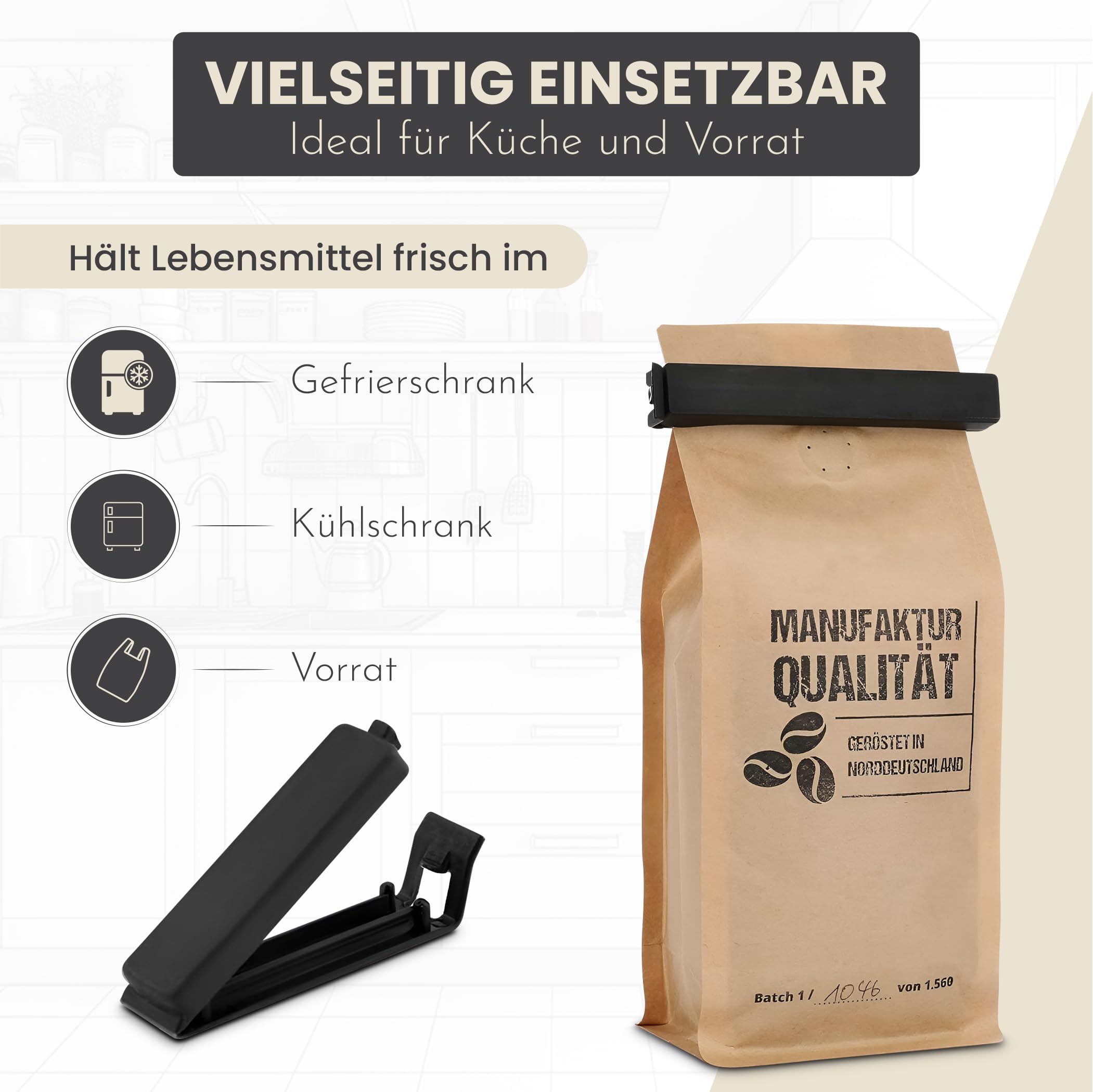 - Bestens geeignet für z.B Tiefkühllebensmittel, Müsli, Chips, Süssigkeiten, Kaffee oder auch Tierfutter