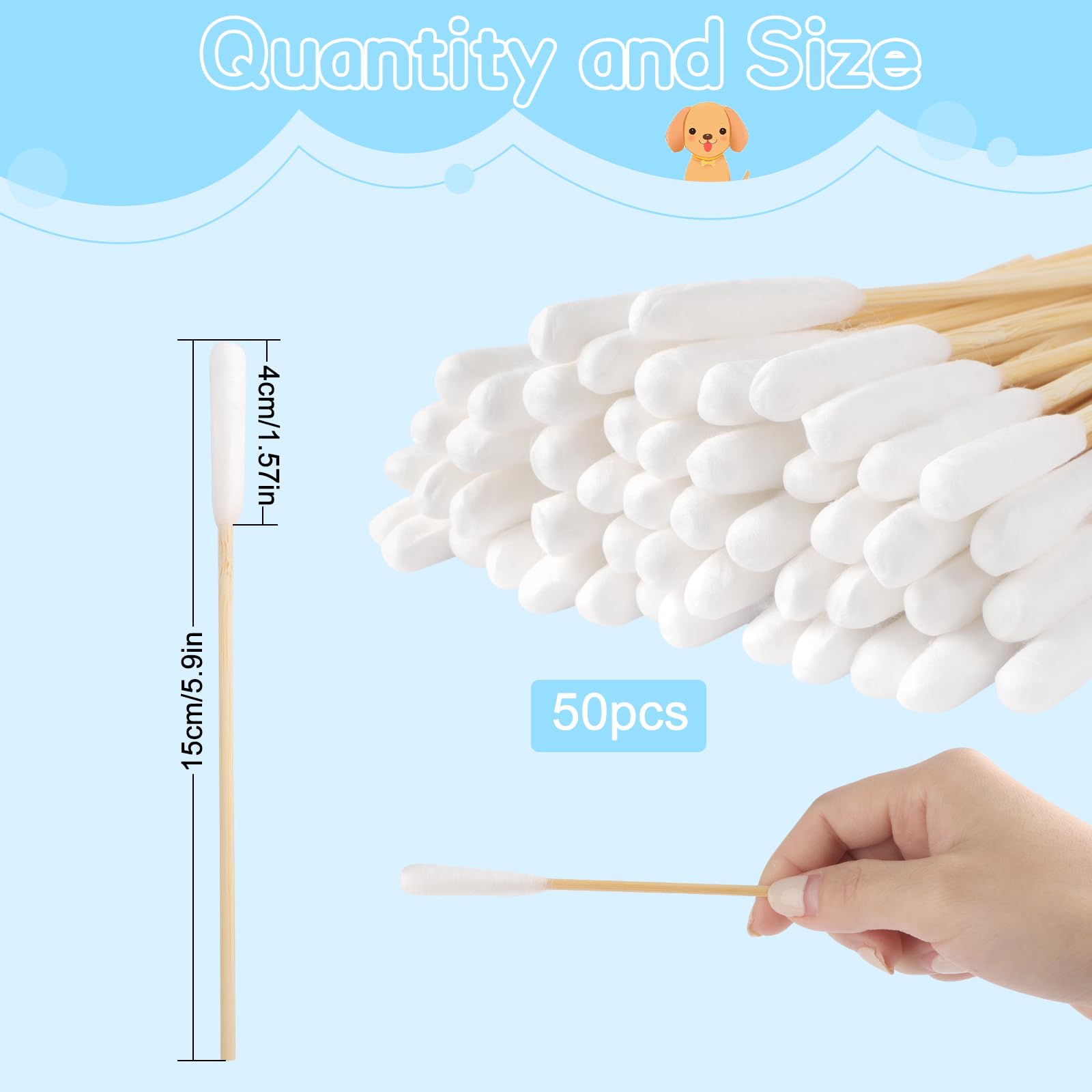 - 【GEEIGNETE GRÖssE】Sie erhalten 50 Stück Haustiere Ohrreiniger: 15cm/5,9 Zoll. Ausreichende Menge, um den Bedarf zu decken.
