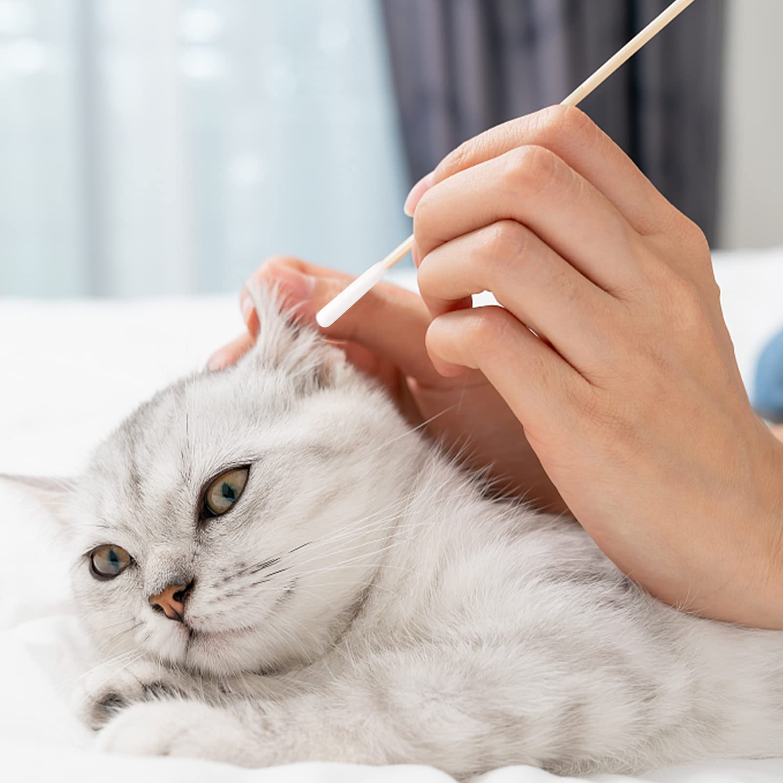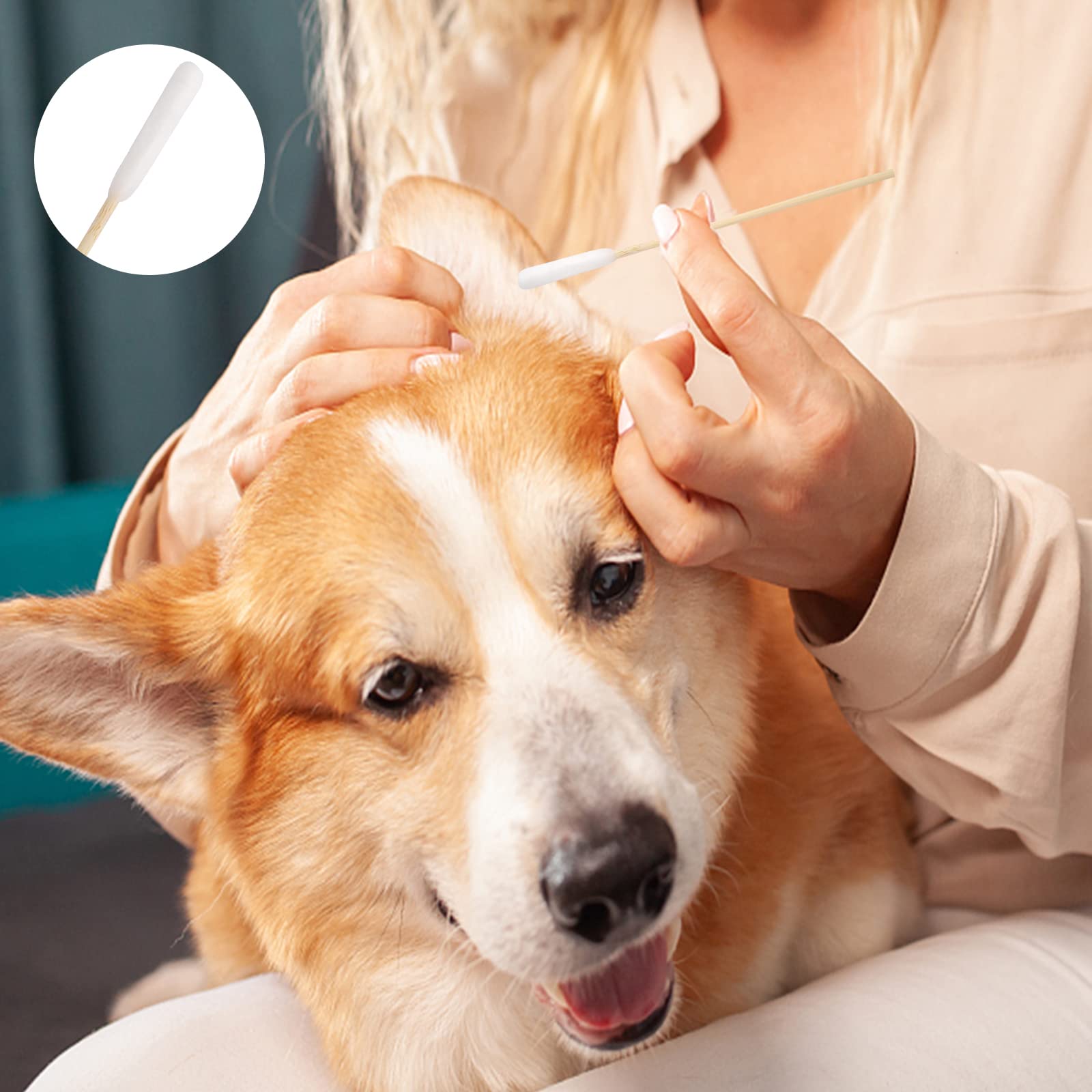Vaktop Hunde Wattestäbchen, 100 Stück 2 Grösse Haustiere Ohrreiniger Lang, Ohrreinigungsstäbchen Haustier mit Breiter Kopf - für Haustiere Hunde, Katzen (15cm/12cm)