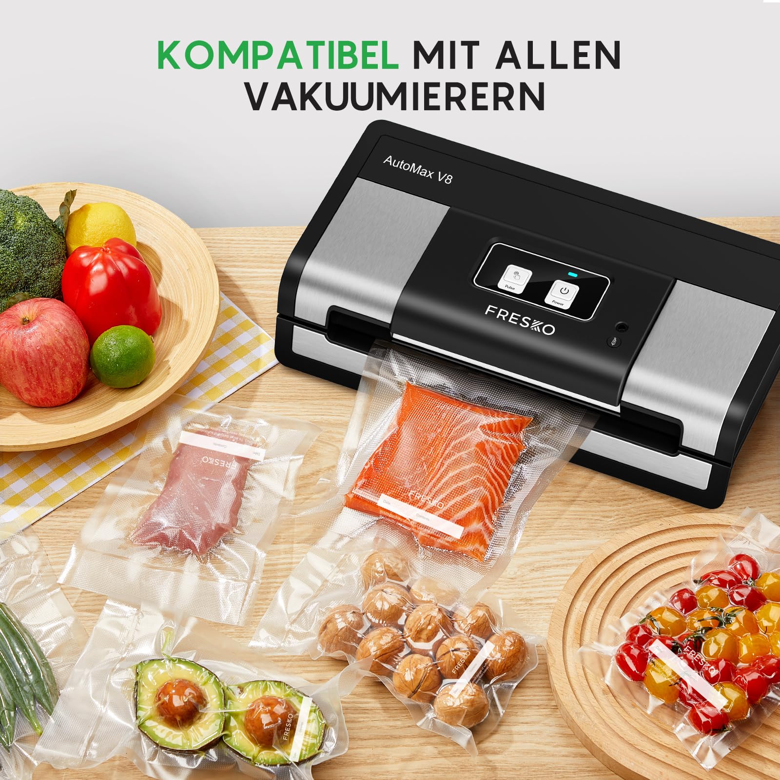 FRESKO Vakuumbeutel 28 x 40 cm / 80 Stück, professionelle Folienbeutel, geeignet für alle Vakuumiergeräte, BPA-frei, geprägte Luftrillen, Sous-Vide-Gefrierbeutel