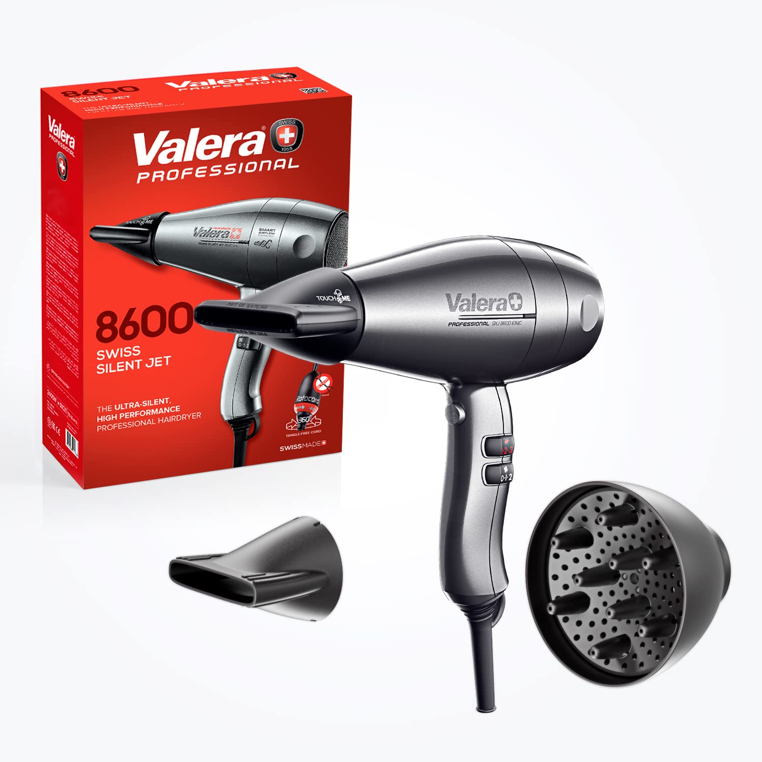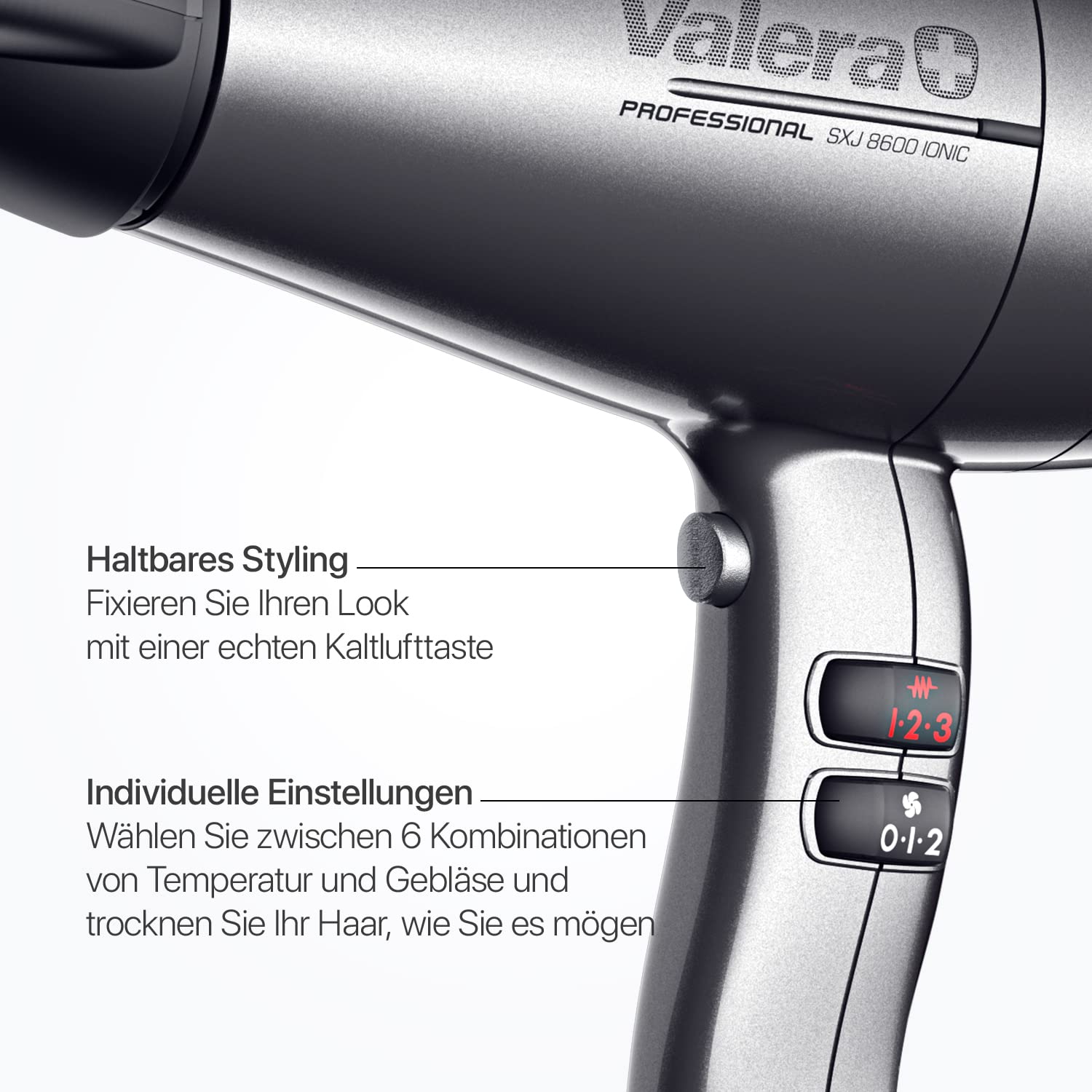 Valera, Swiss Silent Jet 8600, professioneller Haartrockner, Föhn mit leistungsstarkem Motor AC-Performance, 3 Temperaturstufen, Ionen-Generator, verdrehsicherem Super-Flex-Kabel, 2400 W, platinfarben