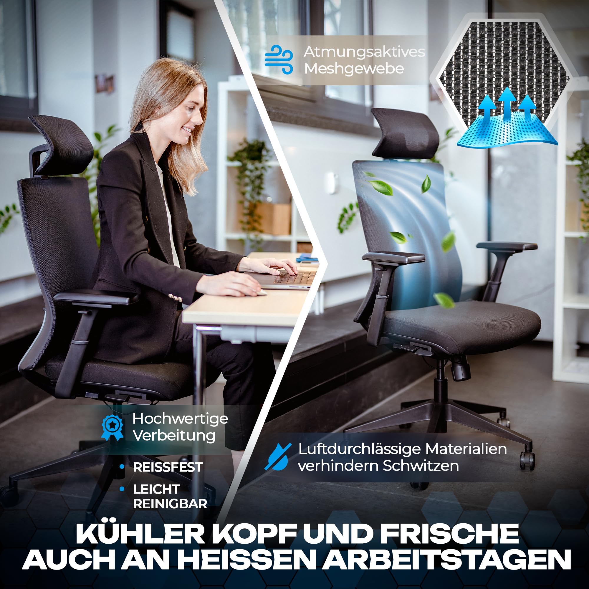 Der VALKENSTOL Bürostuhl überzeugt mit höhenverstellbarem Sitz, verstellbarer Lordosenstütze, neigbarem Kopfteil, anpassbaren Armlehnen, 120 Grad Neigung, stabilen Rollen und einer Belastbarkeit bis 150 kg, bei einfacher Montage. Maximaler Komfort, der dich besser durch den Tag trägt - VALKENSTOL! Produkt-Highlights: Multifunktions-Bürostuhl für Arbeiten, Studieren und Entspannen, Höhenverstellbarer Sitz für individuelle Anpassung; Verstellbare Lordosenstütze für ergonomischen Komfort, Höhen- und neigungsverstellbares Kopfteil zur Entlastung des Nackens, in Höhe und Seite verstellbare 3D Armlehnen für optimalen Halt der Arme, Neigung bis 120 Grad, ideal zum Relaxen und entspannen, Verstellbare Neigungsspannung sowie Sperr- und Entsperrfunktion, in der Tiefe verstellbare Sitzfläche, Stabile Teppichrollen, bodenschonend und leise, Robuste Konstruktion mit verstärkten Elementen; Maximale Belastbarkeit bis 150 kg, Einfache Montage mit Schraubenset und Montagehandschuhen, Technische Daten: Maximale Belastbarkeit: 150 kg, Neigungswinkel: Bis zu 120 Grad, Kopfteil-Höhenverstellung: 11 cm, Rollen: 5 Rollen, geeignet für verschiedene Bodenarten, Material: Hochwertige, langlebige Materialien, Farbe: schwarz (Je nach Modell variiert), Gewicht: 17-22 kg (Abhängig vom Modell), Lieferumfang: 1x Bürostuhl VALKENSTOL M3, 1x Schraubenset zur einfachen Montage, 1x Paar Montagehandschuhe, 5x Rollen für schonende Nutzung auf verschiedenen Böden, 1x Montageanleitung