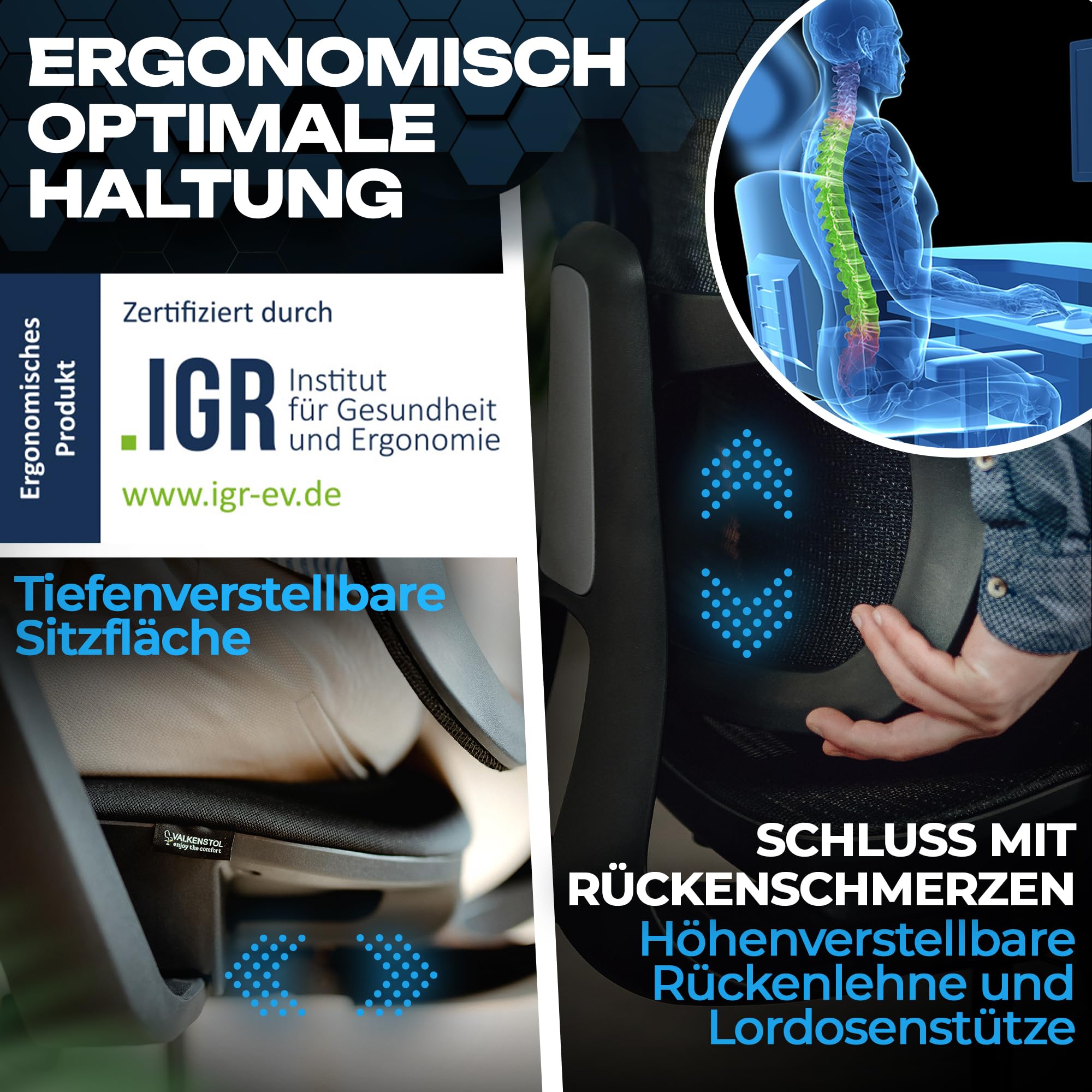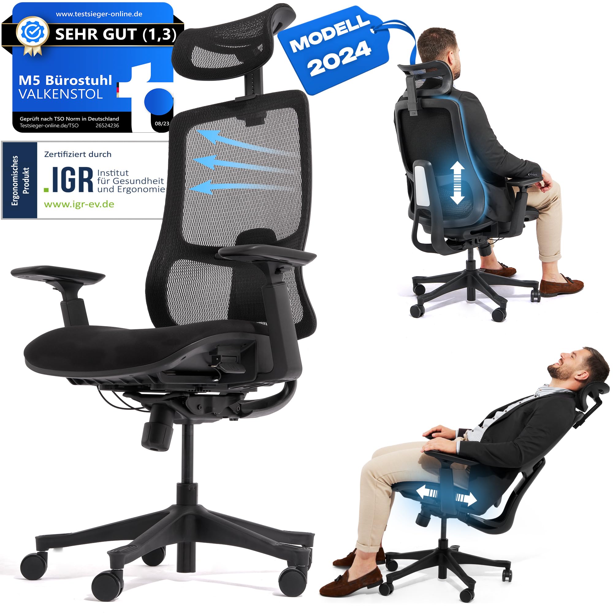 VALKENSTOL M5 Bürostuhl Ergonomisch Testsieger Höhenverstellbare Rückenlehne und Einstellbare Sitztiefe, Schaumstoff-Sitz, Schreibtischstuhl gesunder Rücken auch Grosse Menschen, Chefsessel