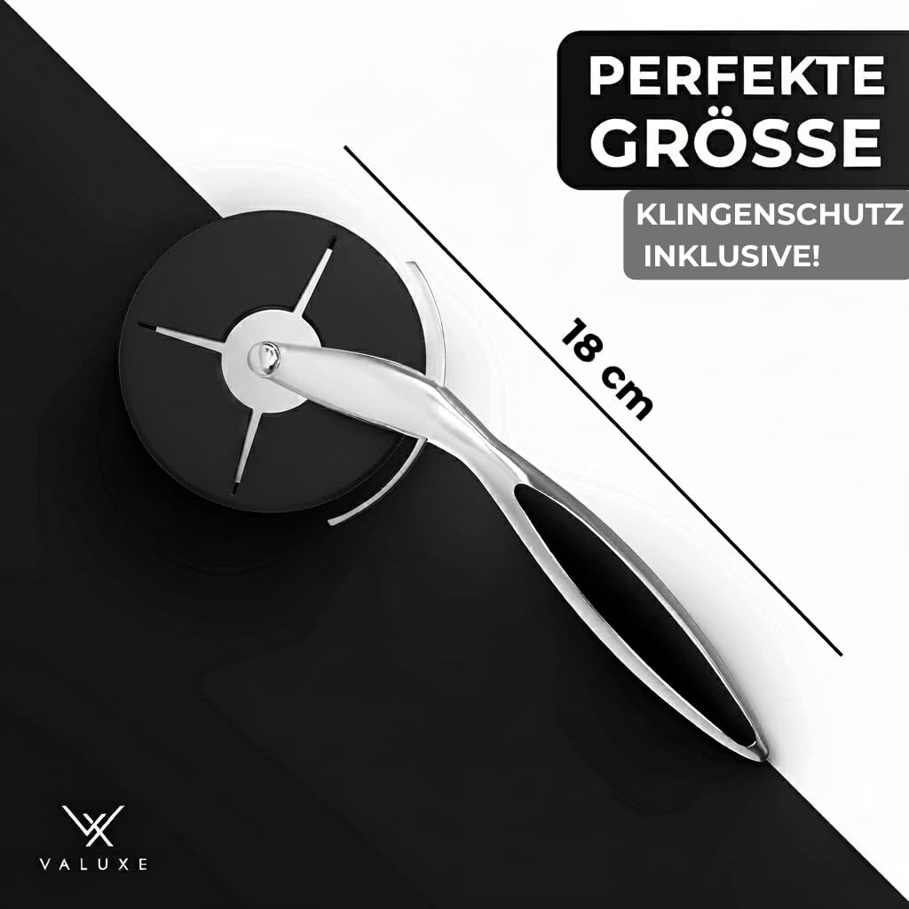 VALUXE® Pizzaschneider aus Edelstahl - Pizzaroller scharf & spülmaschinenfest - Professioneller Pizza-Cutter Roller inkl. Klingenschutz - Pizzamesser Rad