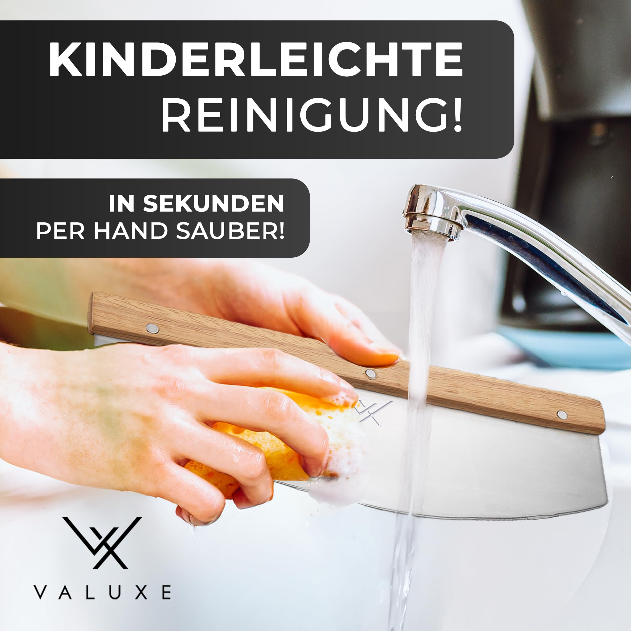 VALUXE Premium Pizzamesser aus Edelstahl & Holz - Profi Pizzaschneider Wiegemesser effektiver als Pizzaroller Handlicher 32cm Pizza Cutter - Pizza Messer für gleichmässiges Schneiden