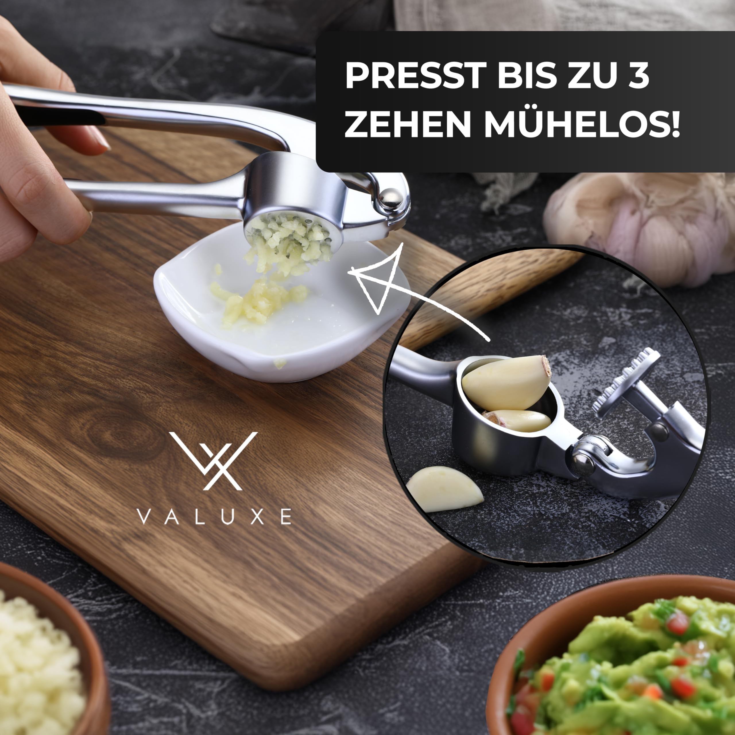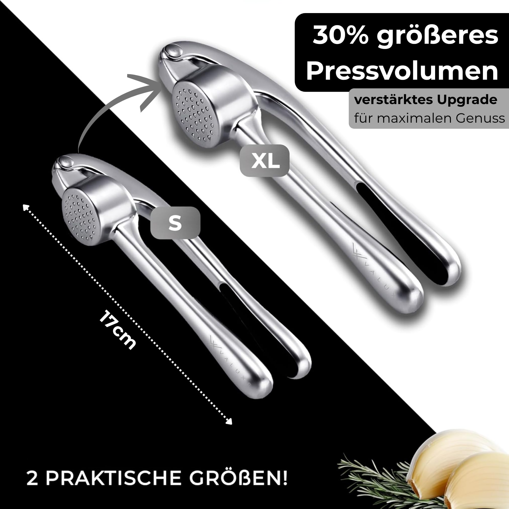 VALUXE® Knoblauchpresse gross spülmaschinenfest mit kraftvoller Hebelwirkung - Praktische Knoblauch-Presse - Profi Garlic Press Crusher, Handpresse hochwertig & robust