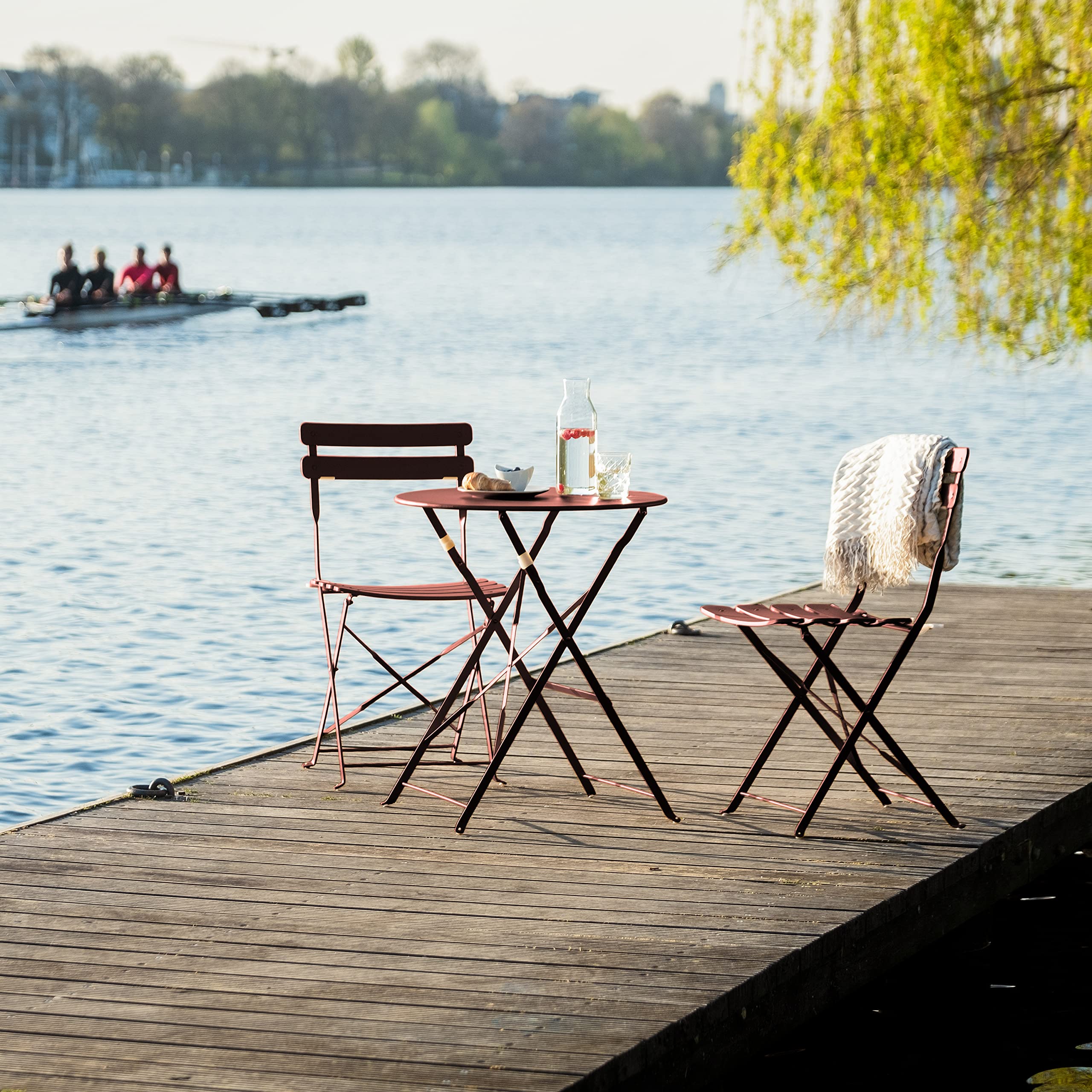 Vanage | Bistro Set Balkon | Balkonmöbel klappbar Set 3-teilig | pulverbeschichteter Stahl, wetterbeständig, Gartentisch & Stühle perfekt für Garten & kleine Balkone