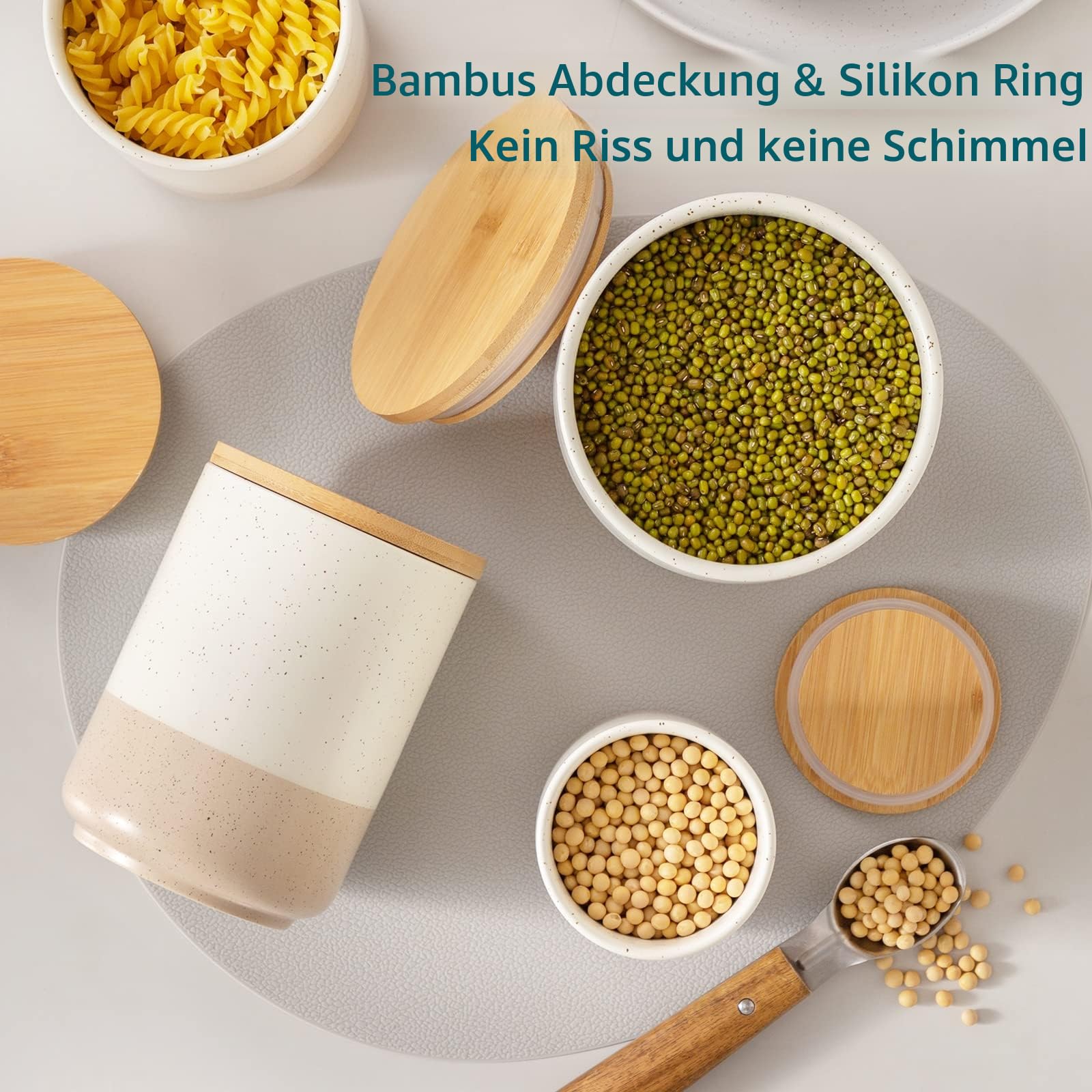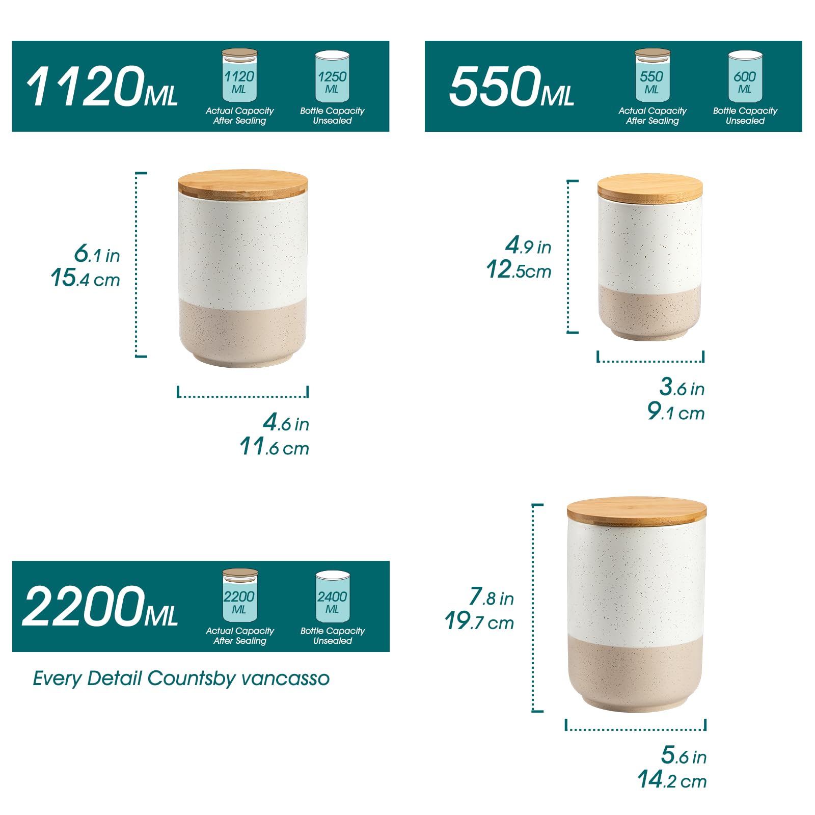 vancasso Vorratsdosen Keramik, Vorratsbehälter mit luftdichten deckel, 2200 ml/ 1120 ml/ 550 ml, Dauerhaft aufbewahrung dosen für Kaffee, Zucker, Tee, Müsli, Mehl, Gewürze, rund