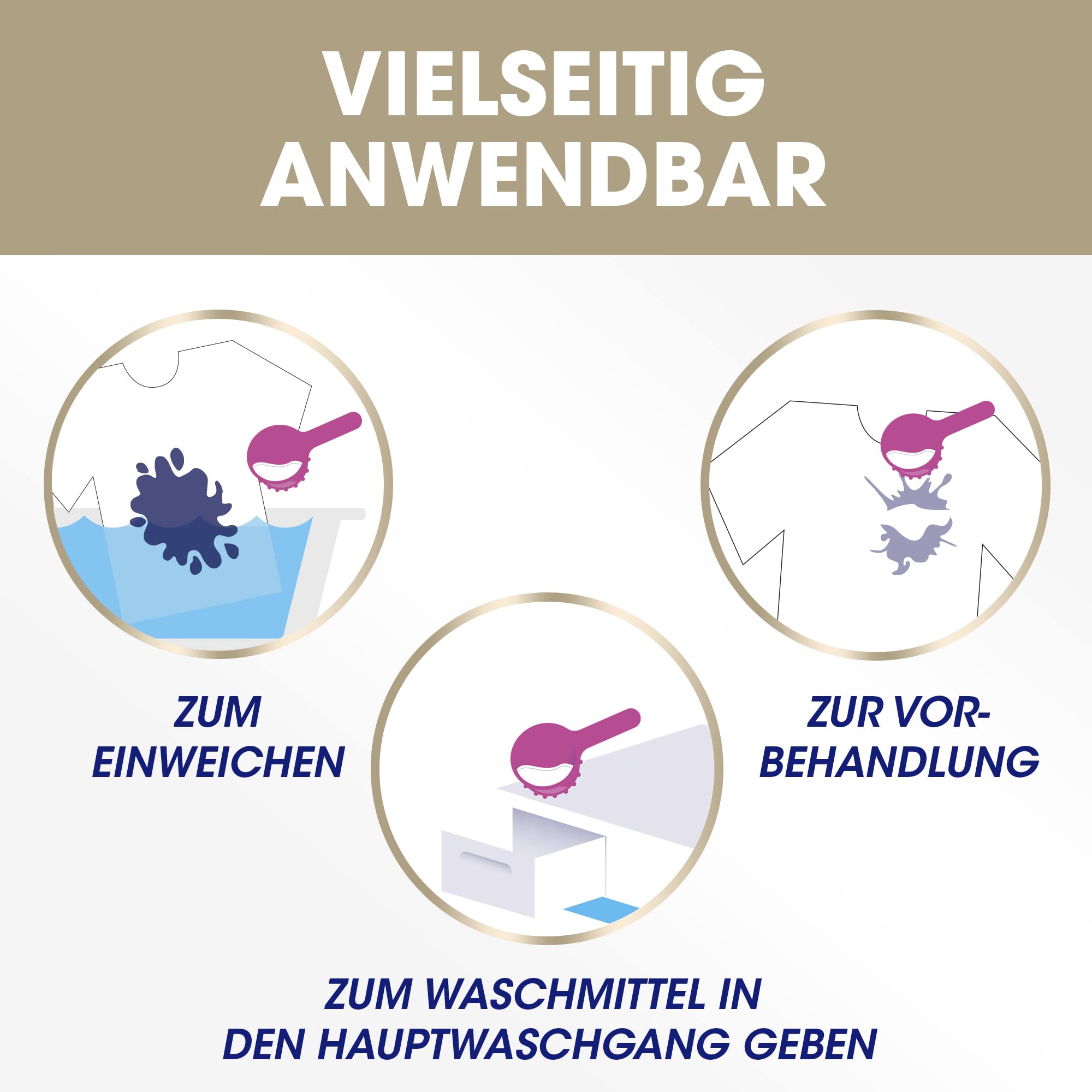 Vanish Oxi Action Wäsche Booster Gel Powerweiss (ohne Chlor)Anwendungshinweise1. Waschen: 50 ml Gel zum Waschmittel in das Hauptwaschfach geben. Waschmittel wie gewohnt dosieren. Eine Dosis zu jeder Wäsche geben.2. Vorbehandeln: 2 ml Gel direkt auf den Fleck geben und nach Bedarf sanft einreiben (max. 10 Minuten).3. Einweichen: 100 ml Gel in 4 l Wasser (max. 40 °C) geben und Textilien darin einweichen lassen.Pflegehinweise des Herstellers beachtenInhaltsstoffe 8 – <15 Prozent: Bleichmittel auf Sauerstoffbasis, nichtionische Tenside, <5Prozent: anionische Tenside, Duftstoffe Gefährliche Inhaltssstoffe: Wasserstoffperoxid, Benzolsulfonsäure, C10-C13-Alkylderivate, Natriumsalze, Alkohole C12-C14 ethoxyliert.SicherheitsinformationenGefahr. Verursacht schwere Augenschäden. Darf nicht in die Hände von Kindern gelangen. Ist ärztlicher Rat erforderlich, Verpackung oder Kenn-zeichnungsetikett bereithalten. Nach Gebrauch Hände gründlich waschen. Bei Kontakt mit den Augen: Einige Minuten lang behutsam mit Wasserspülen. Eventuell vorhandene Kontaktlinsen nach Möglichkeit entfernen. Weiter spülen. Sofort Giftinformationszentrum Arzt anrufen. Bei Ver-schlucken: Bei Unwohlsein Giftinformationszentrum /Arzt anrufen.Über VanishIn jeder Wohnung entstehen im Alltag häufig unschöne Flecken - ob auf Kleidungsstücken oder Teppichen. Vanish bietet als führender Expertedie beste Fleckenentfernungslösung für jede Situation und stellt Produkte her, mit denen man beinahe jeden sichtbaren Fleck beseitigen kann -sogar hartnäckige, eingetrocknete und alte Flecken. Vanish hilft in jedem Haushalt und schafft mehr Zeit für die schönen Dinge im Leben.*Basierend auf dem Weisserhalt nach 50 Wäschen vs. Waschmittel allein nach 25 Wäschen bei Kaltwäsche.