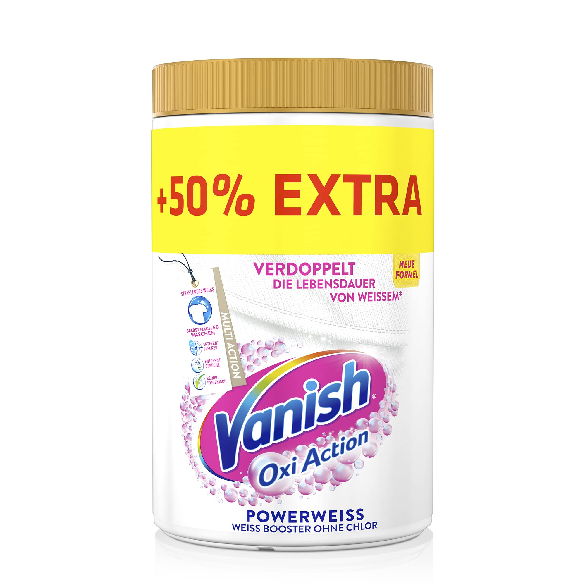Vanish Oxi Action Wäsche Booster Pulver Powerweiss (ohne Chlor)Anwendungshinweise1. Waschen: Pulver zum Waschmittel in das Hauptwaschfach geben. Waschmittel wie gewohnt dosieren.