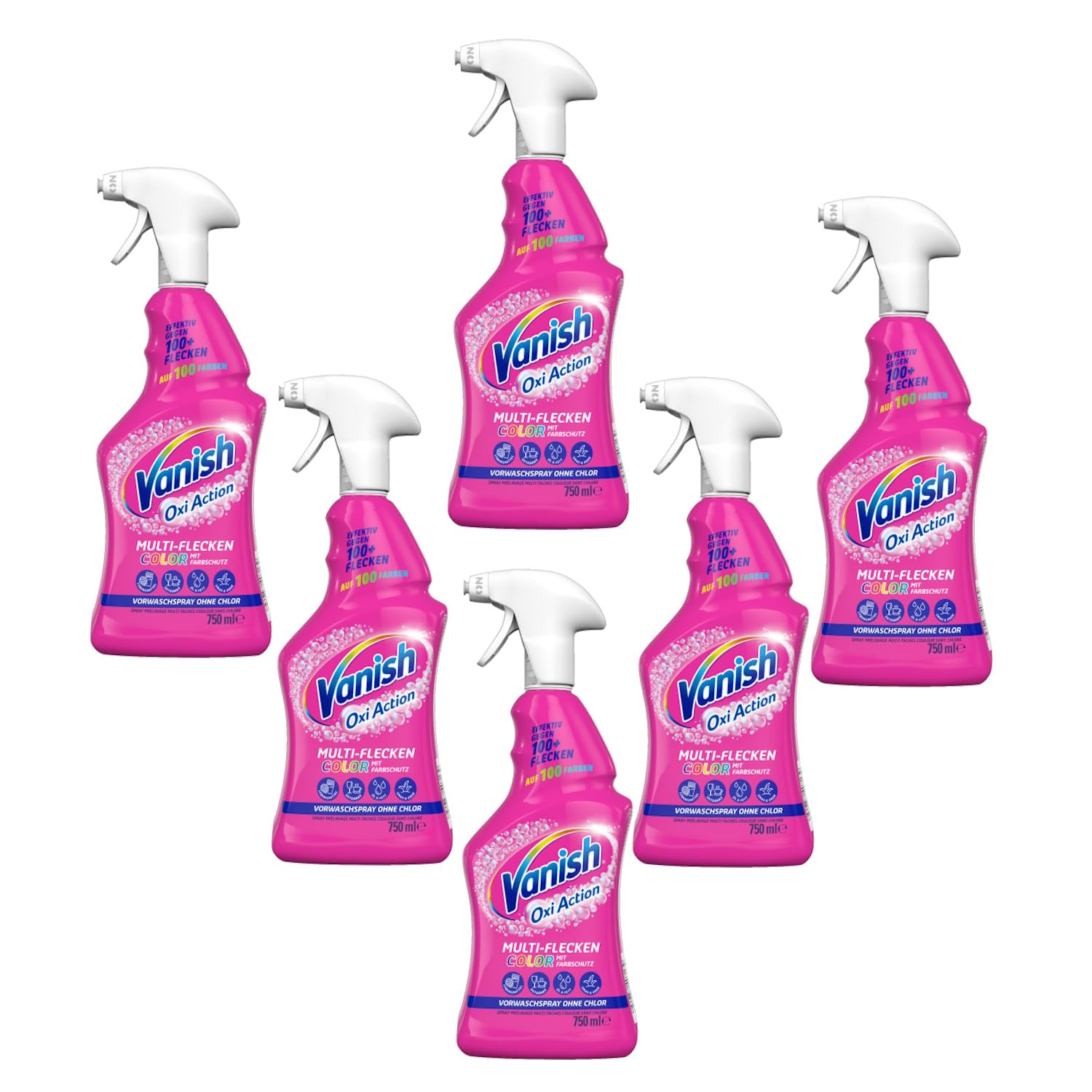 Vanish Oxi Action Vorwaschspray für Buntes – Wirksam gegen viele Arten von Flecken – Für die Vorbehandlung bunter Wäsche – 6 x 750 ml