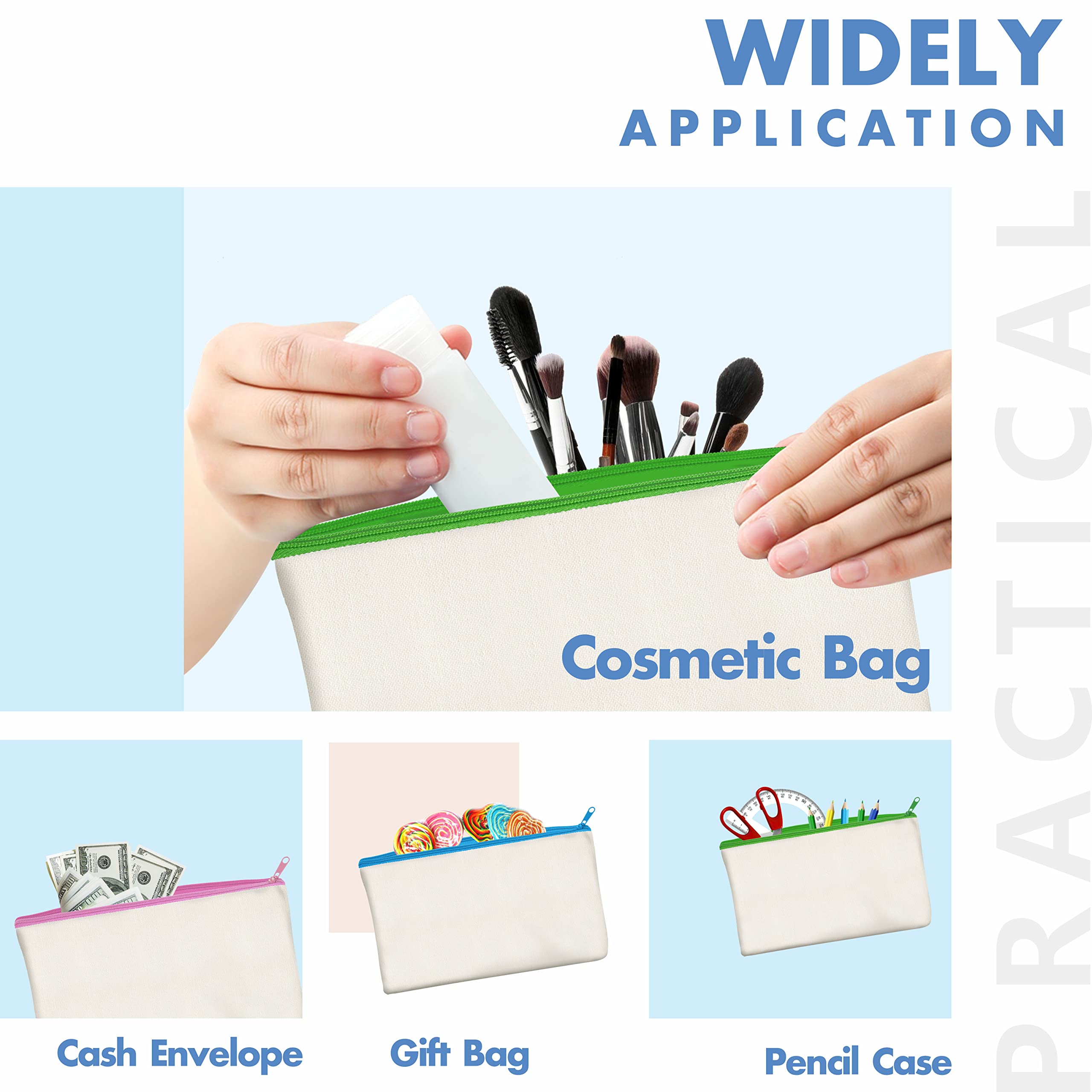 Hohe Qualität: Beigefarbene Taschen mit blauem, grünem, gelbem und rosa Reissverschluss (2 Stück pro Farbe), was Ihre Taschen zu etwas Besonderem macht. Der Reissverschluss funktioniert reibungslos und die Nähte sind sauber genäht. Die Federmappe ist aus hochwertigem, dickem Canvas gefertigt, das leicht, robust und angenehm zu berühren ist. Es wird Ihren Gegenstand sicher und ordentlich aufbewahren.