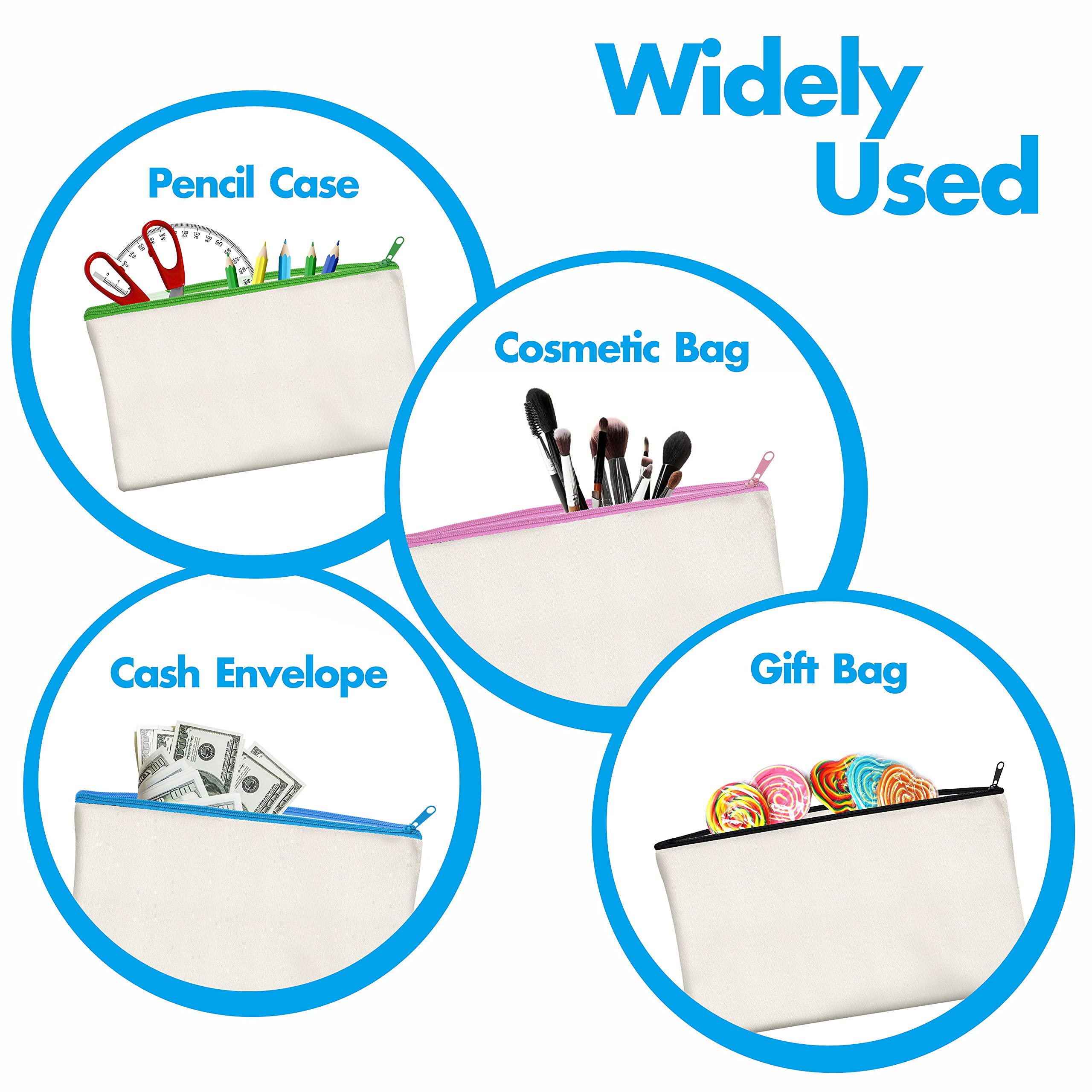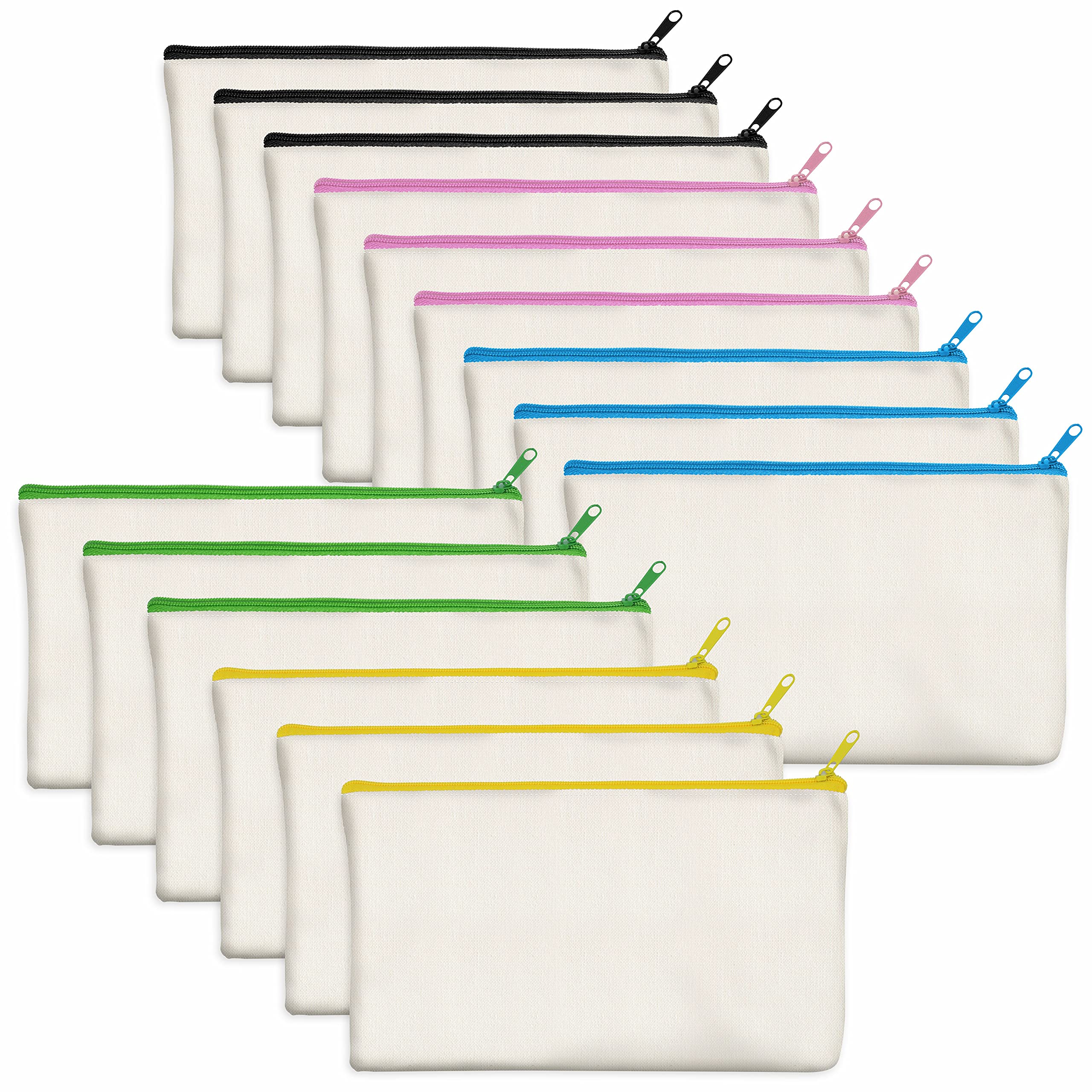 15er-Packung leere Baumwoll/Leinwand-Reissverschlusstaschen; DIY; als Beutel oder Federmäppchen für Make-up, Kosmetik- oder Hygieneartikel und sonstige Aufbewahrung; (beige,farbiger Reissverschluss)