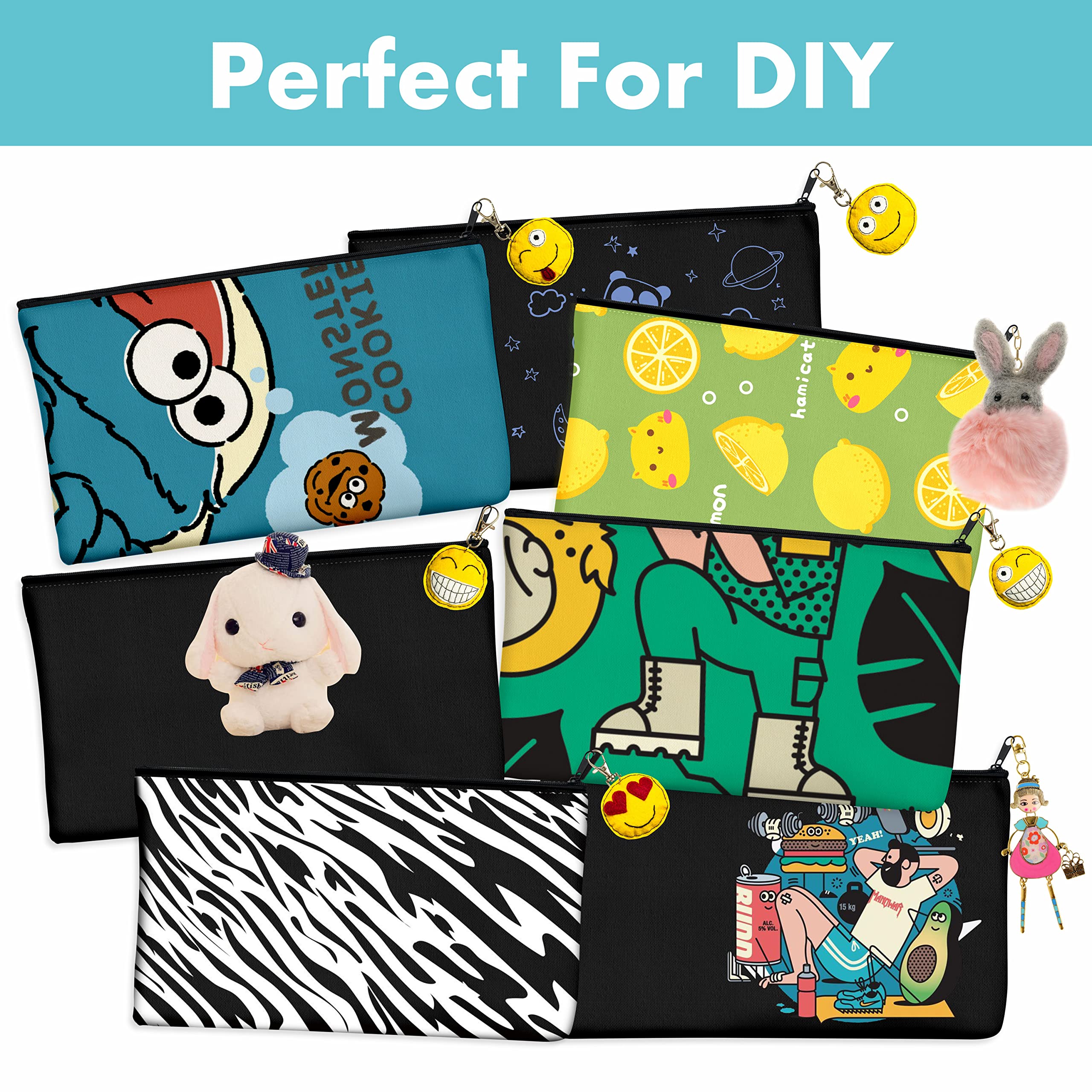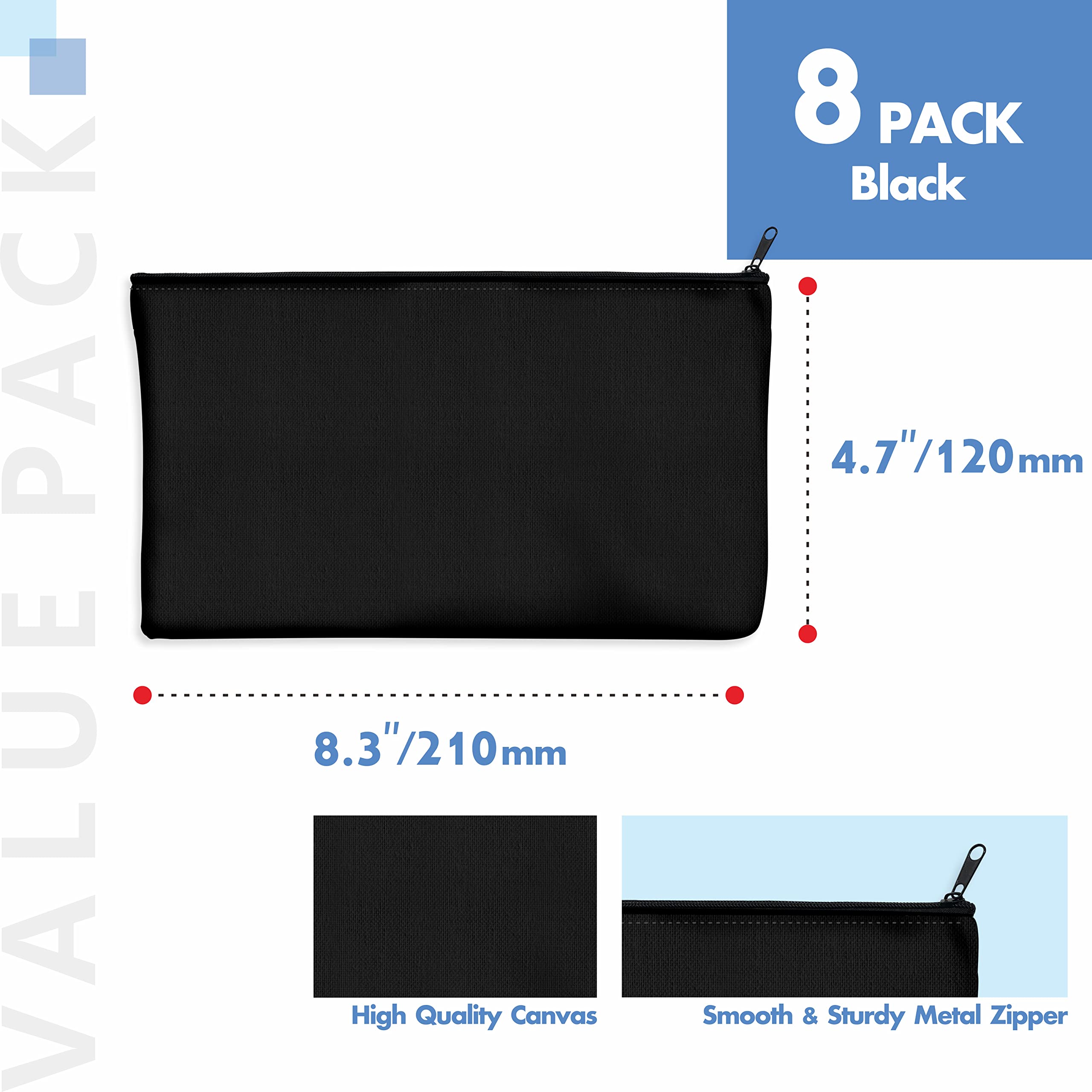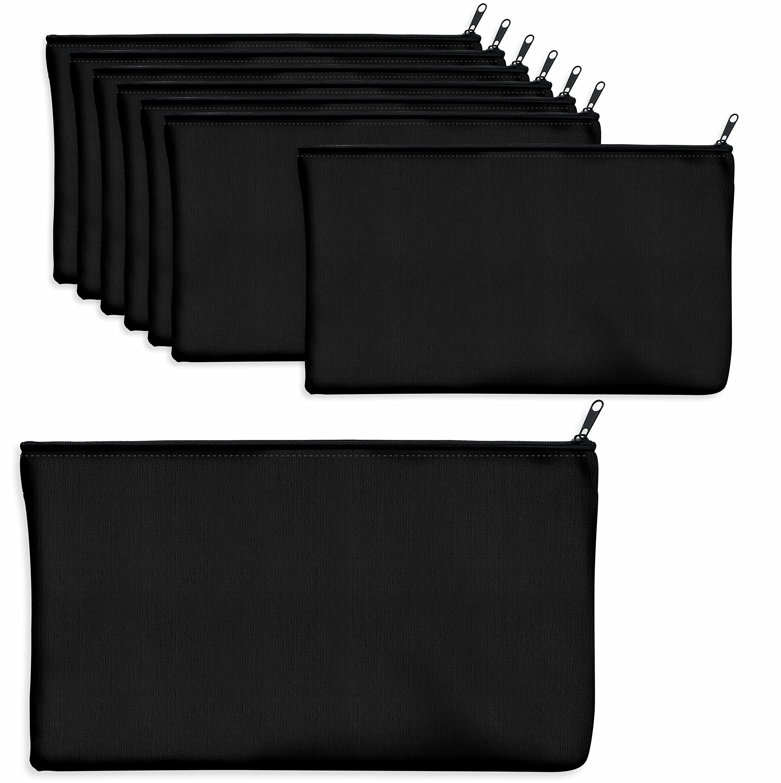 8er-Packung leere Baumwoll/Leinwand-Reissverschlusstaschen; DIY; als Beutel oder Federmäppchen für Make-up, Kosmetik- oder Hygieneartikel und sonstige Aufbewahrung; (Dunkelschwarz, 21 x 12 cm);