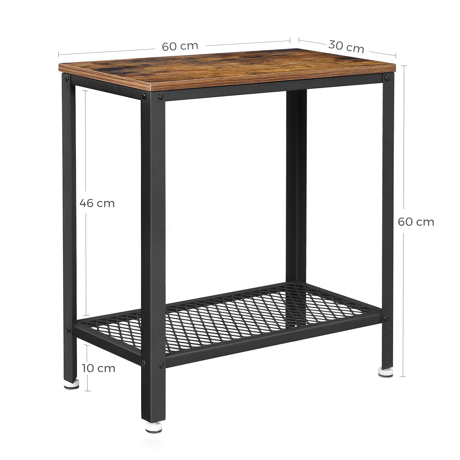 VASAGLE Beistelltisch, Nachttisch, Couchtisch, mit Gitterregal, für Wohnzimmer, Schlafzimmer, Industriestil, rustikales Braun und Schwarz, LET31BX