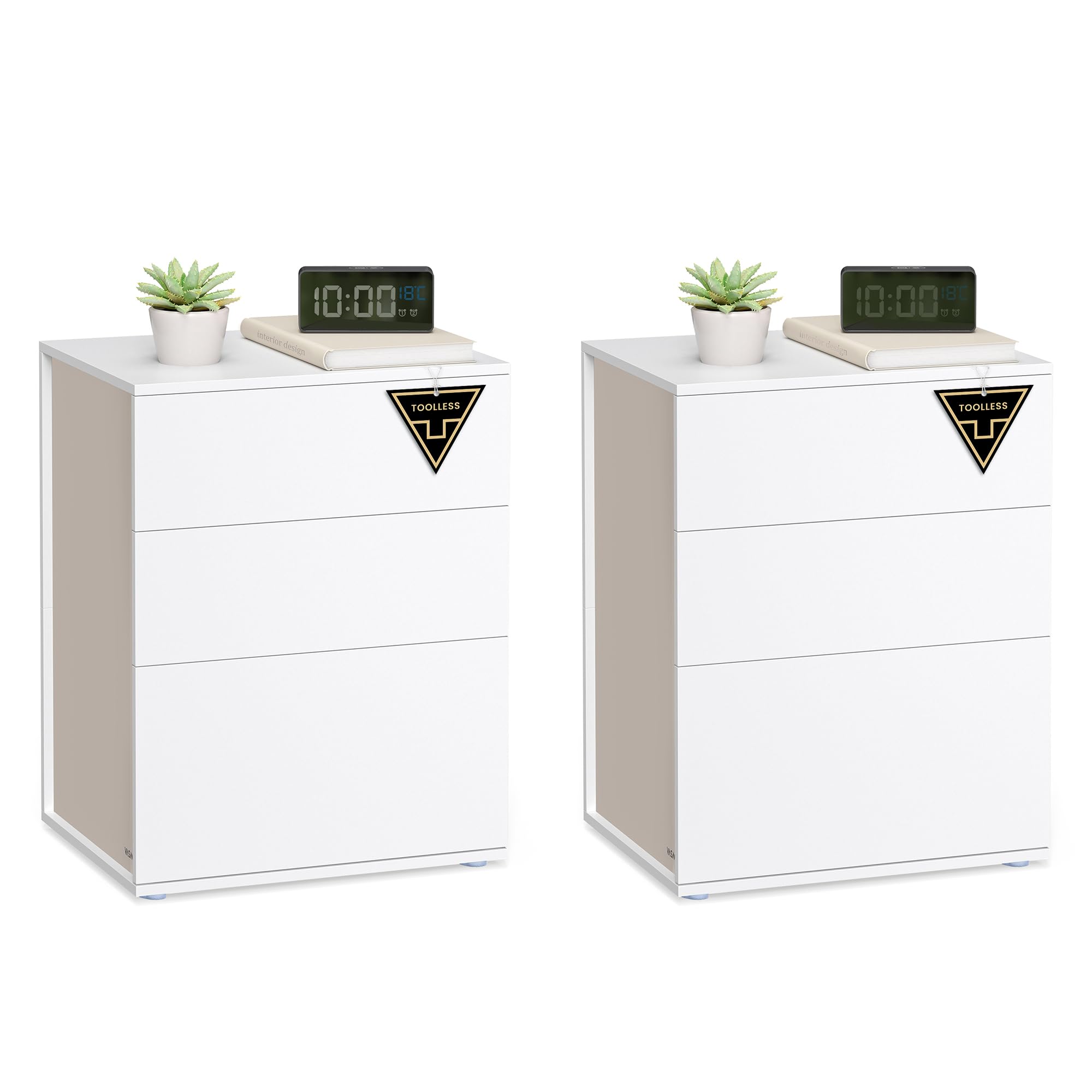 Der Aufbau Ihres neuen Nachttisches war noch nie so einfach! Dank unserer innovativen TOOLLESS-Technologie können Sie diesen Nachttisch in nur ca. 10 Minuten aufbauen – ganz ohne Werkzeug. Dank der durchdachten Verbindungsstücke lassen sich die Einzelteile einfach zusammenstecken – kein stundenlanger Aufbau, kein Hantieren mit unzähligen Zubehörteilen!
