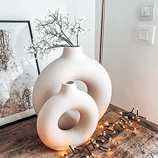 Suchen Sie ein dekoratives Stück, das Ihr Make-up, Sofa oder Ihren Esstisch ergänzt? Dies ist eine schöne, elegante und schwere Tischvase. Das minimalistische Design und die sanften neutralen Farben sorgen für einen eleganten Akzent, der sich nahtlos an Ihren aktuellen Einrichtungsstil anpasst. Es glänzt mit einem schlichten, unkomplizierten Stil und verwandelt jeden Raum im Zuhause. Verleihen Sie jedem Raum Ihres Zuhauses, Wohnheims oder Büros einen Hauch moderner Kunst. Lochvasen eignen sich perfekt für Wohnzimmer, Küchen, Schlafzimmer, Kaminsimse, Schreibtische, Couchtische und überall dort, wo Sie eine subtile, schicke Note hinzufügen möchten.