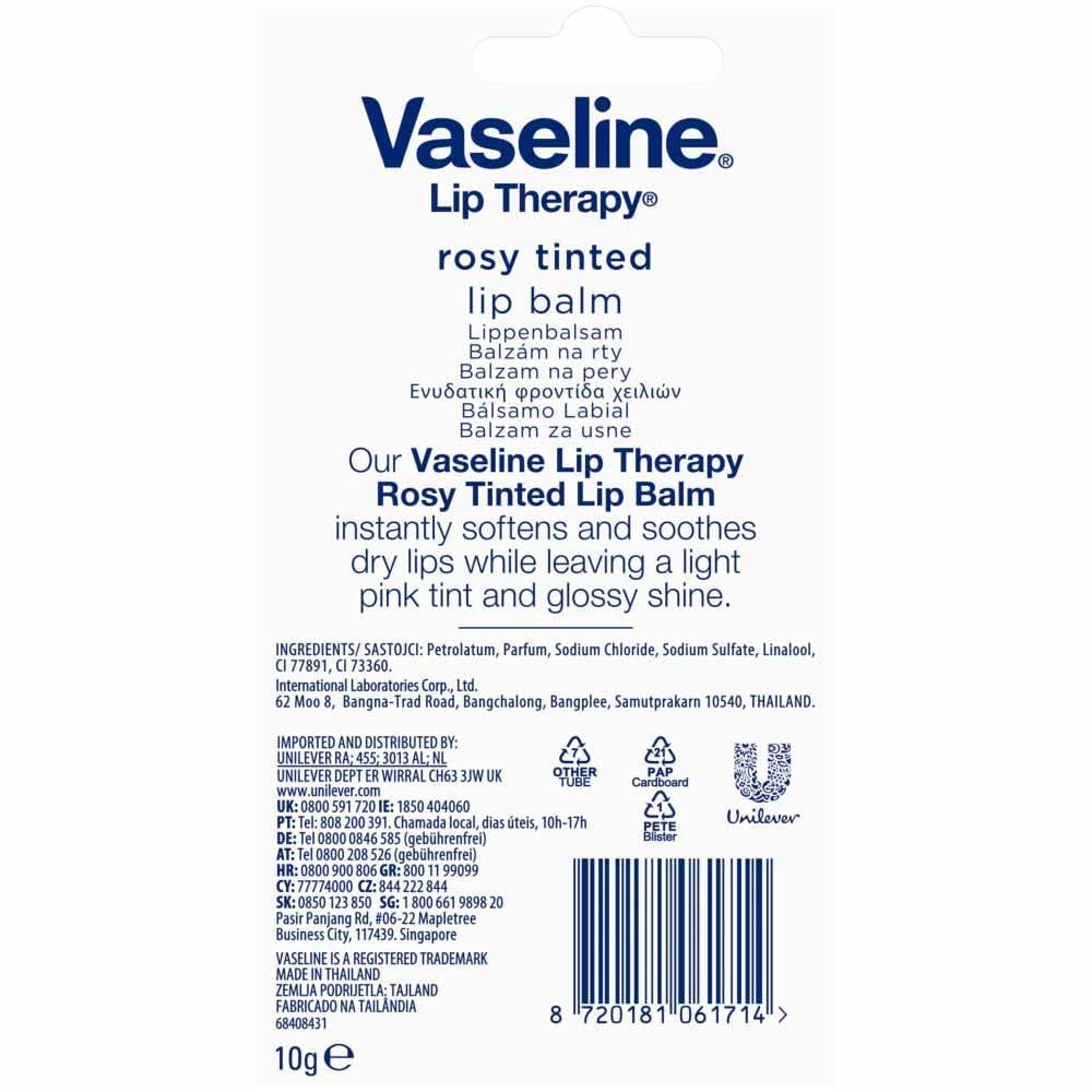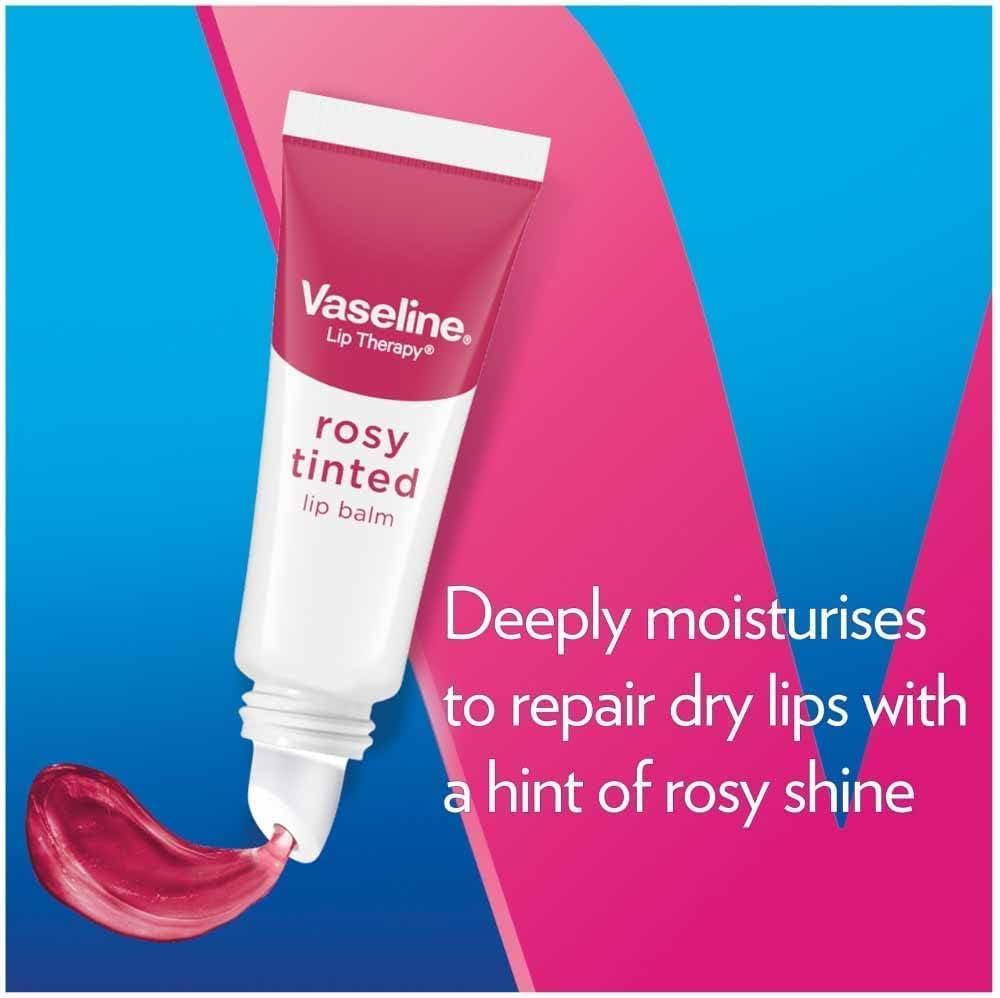 Vaseline Lippenbalsam Rosy Tinted schützt die Lippen vor dem Austrocknen hergestellt mit 100% reiner Vaseline 10 g (Packung mit 5)