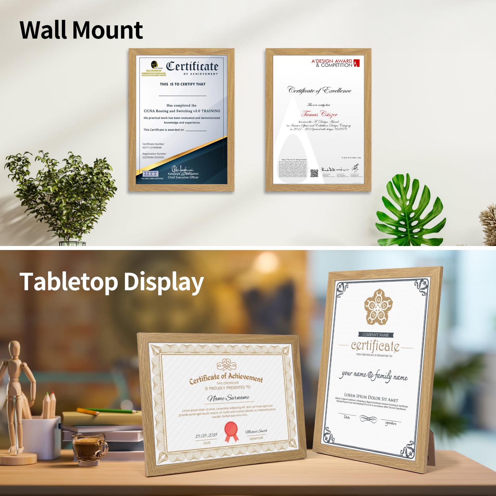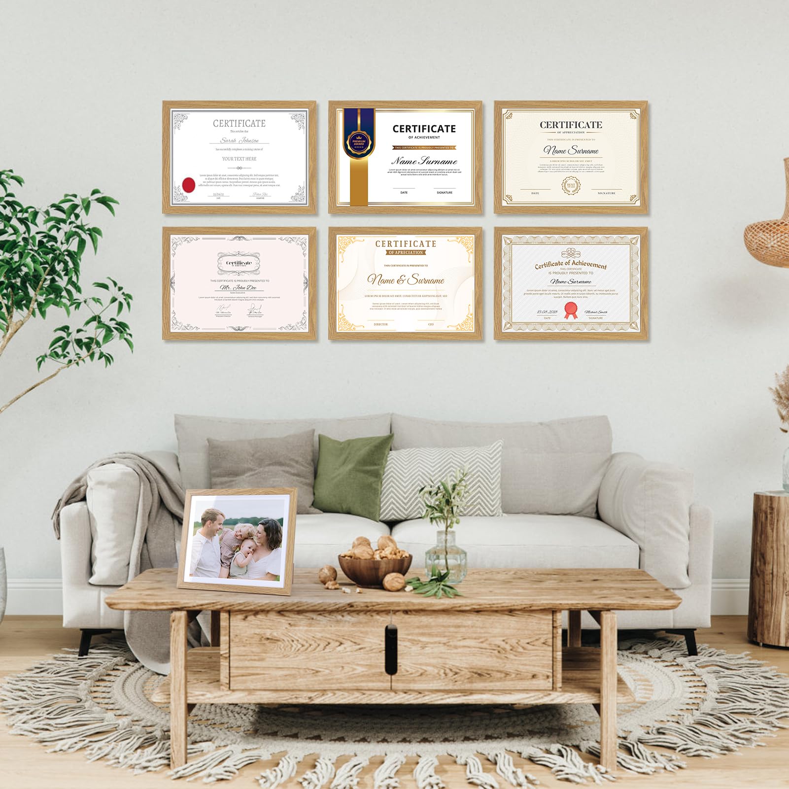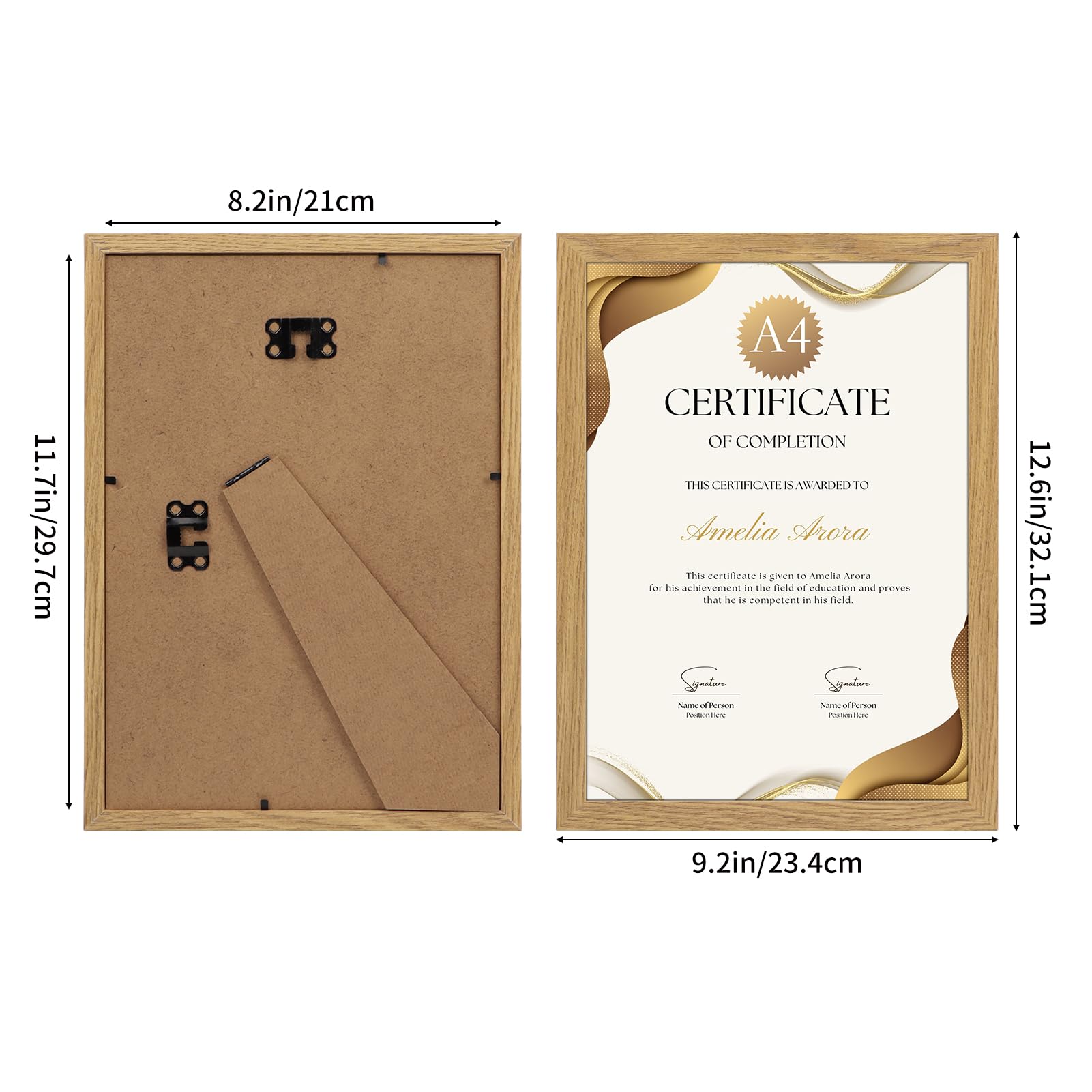 Vasemouh Bilderrahmen A4 (21x29,7cm) 15er-Set, ideal für Zertifikate und Dokumente, Naturholzfarbene Bilderrahmen für Wand- und Tischaufstellung