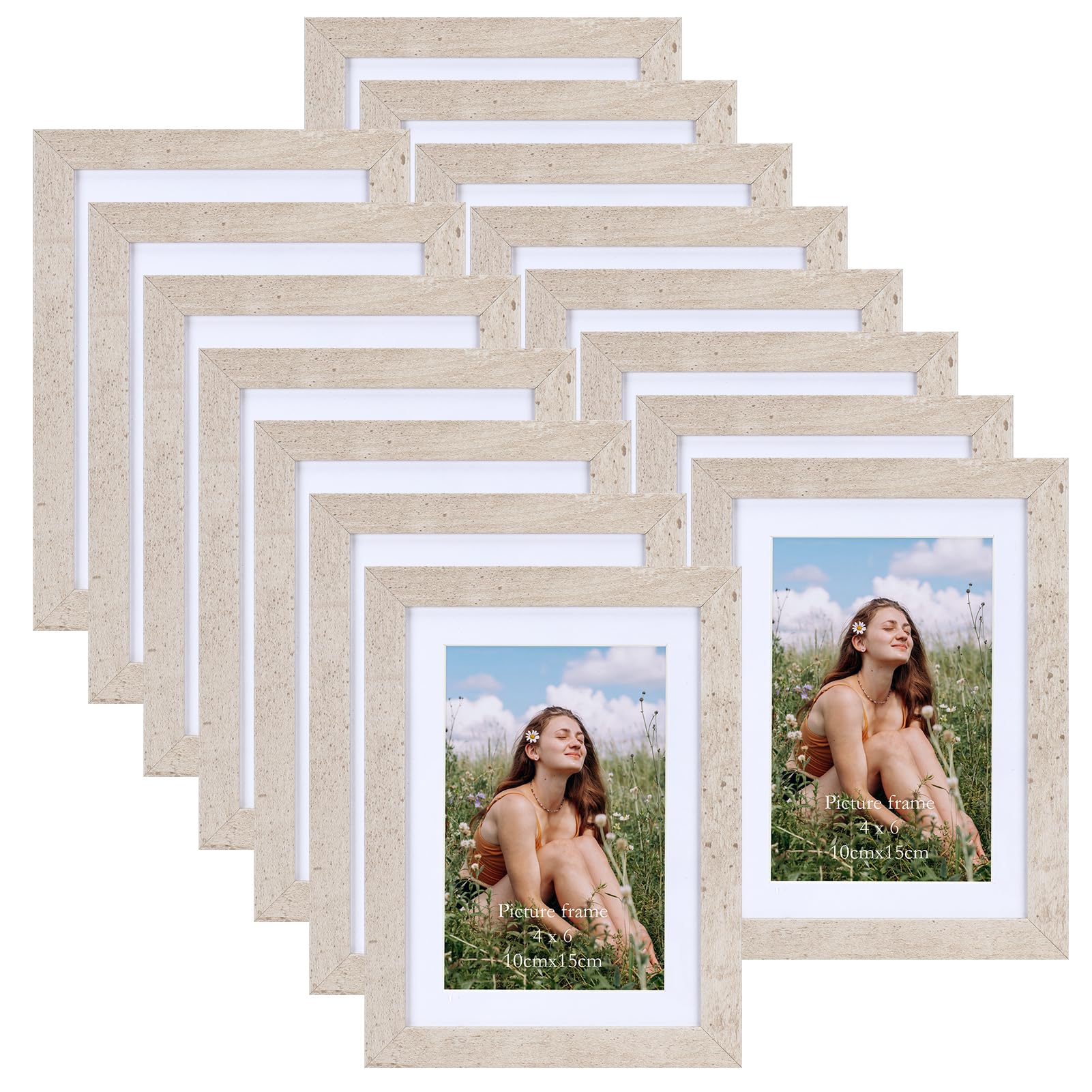 Vasemouh Beige Bilderrahmen 15er-Set, für 10x15 Bilder mit Passepartout oder für Bilder 13x18 ohne Passepartout, Wand- und Tischaufstellung