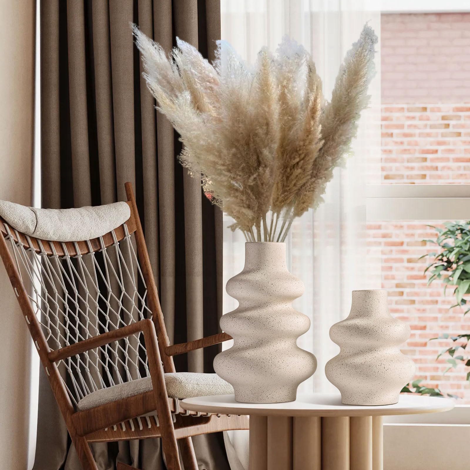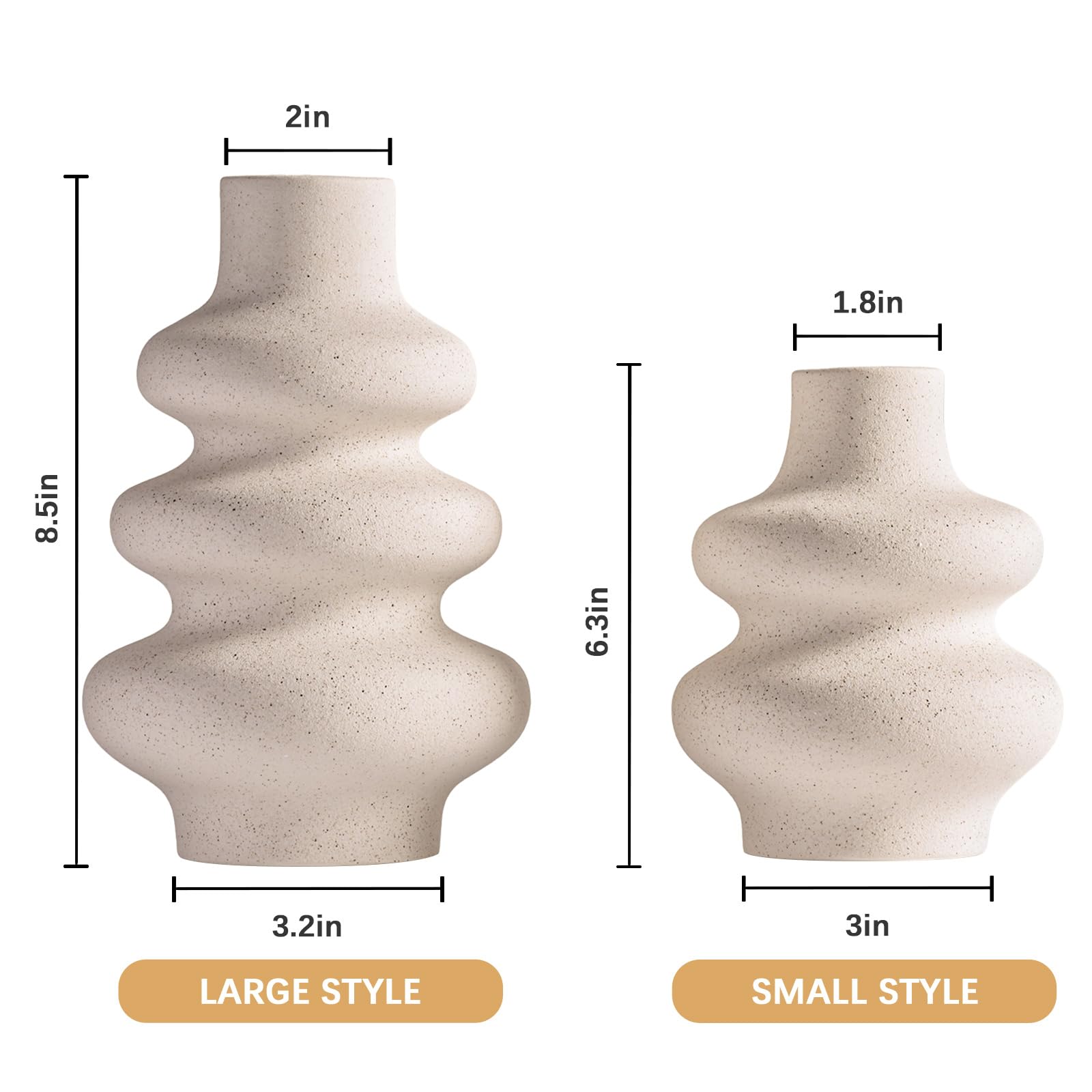 Keramik Vase - 2 Set of beige Runde Vase für Moderne Heimdekoration,Böhmische Deko Vasen,Vase für Bauernhaus Dekoration,Hochzeit Esszimmer Büro Mittelstück Dekoration