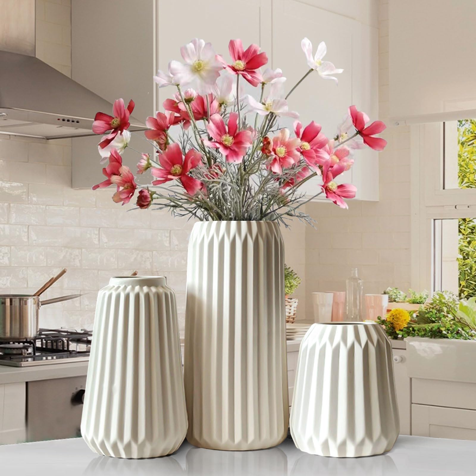 Vasen Deko -Weisse Keramik Vase Satz von 3 für Moderne Home Decor,Deco Matte Vasen für Pampasgras,Vasen Deko Aesthetic Neutral Boho Skandinavische Deko Blumenvasen