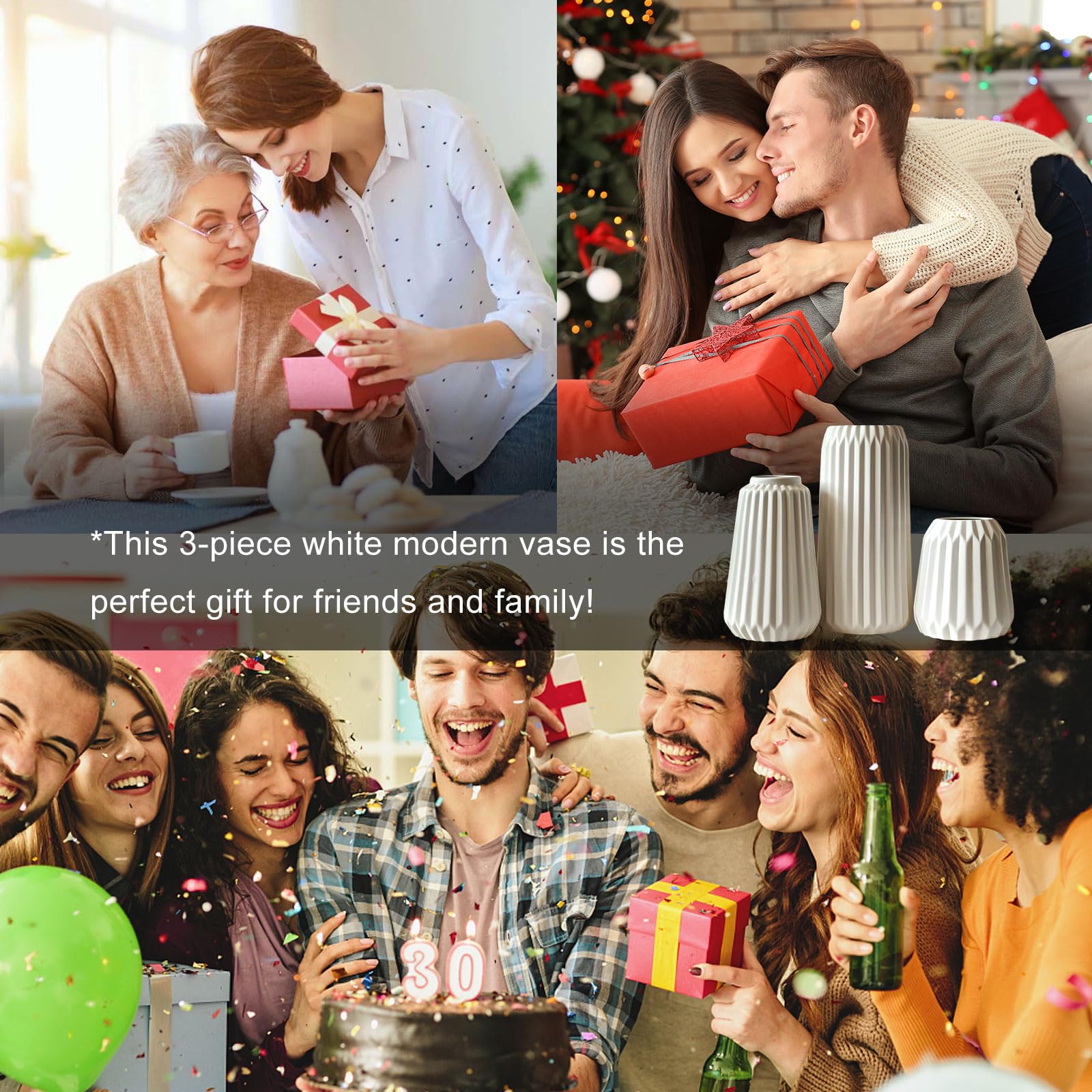 Vasen Deko -Weisse Keramik Vases Satz von 3 für Moderne Home Decor,Deco Matte Vase für Pampasgras,Vasen Deko Aesthetic Neutral Boho Skandinavische Deko Vases (A Weiss)