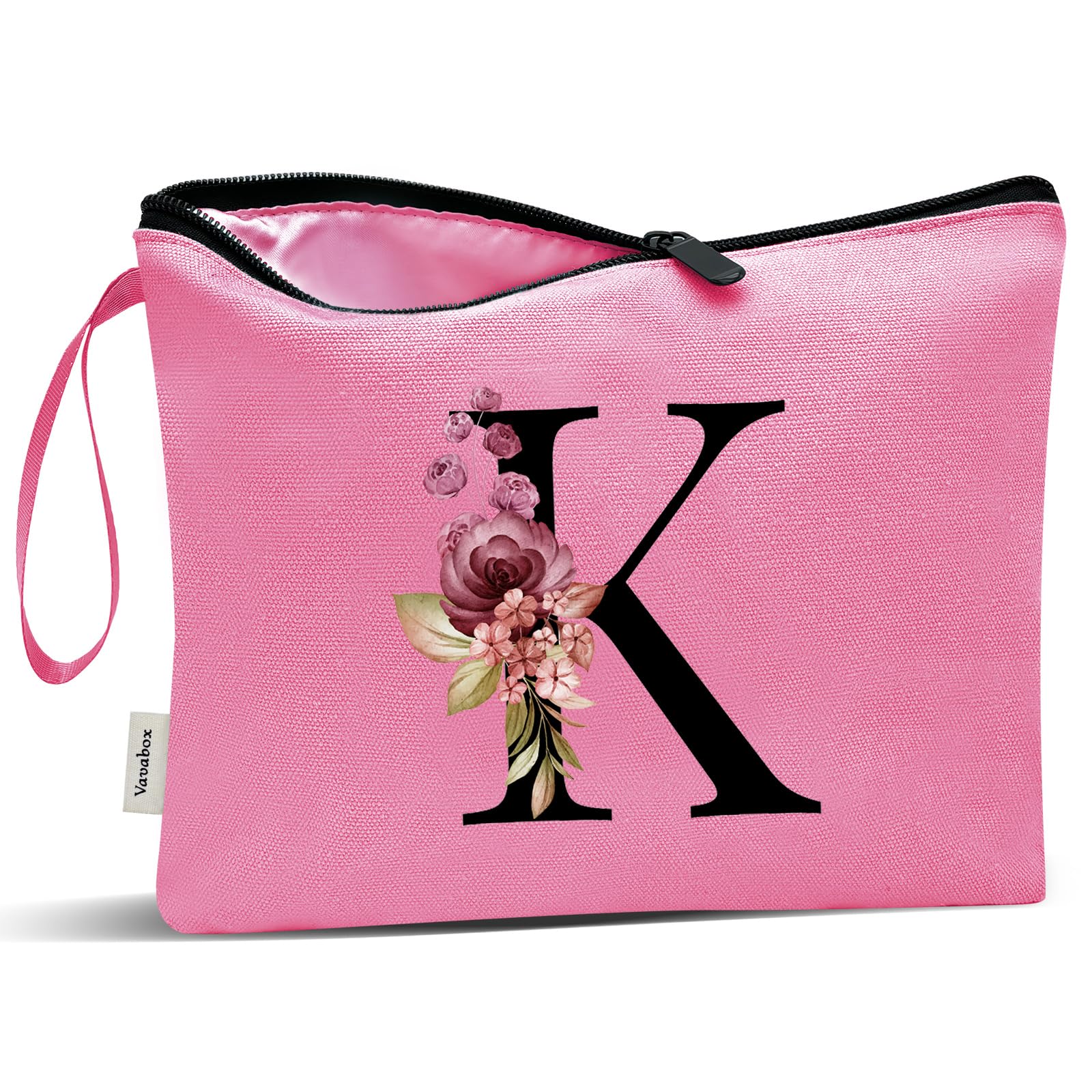 Vavabox Personalisierte Kosmetiktasche A-Z – Geschenk für Frauen, Mütter & Freundinnen (K, Pfirsichrot)