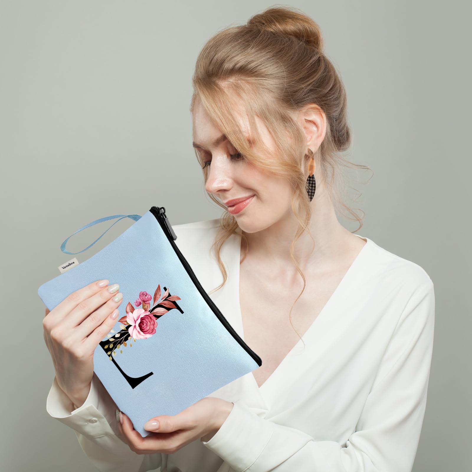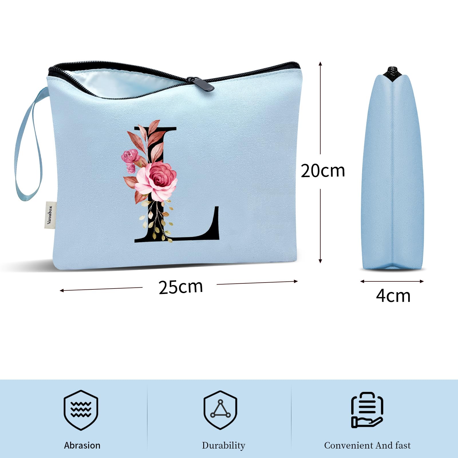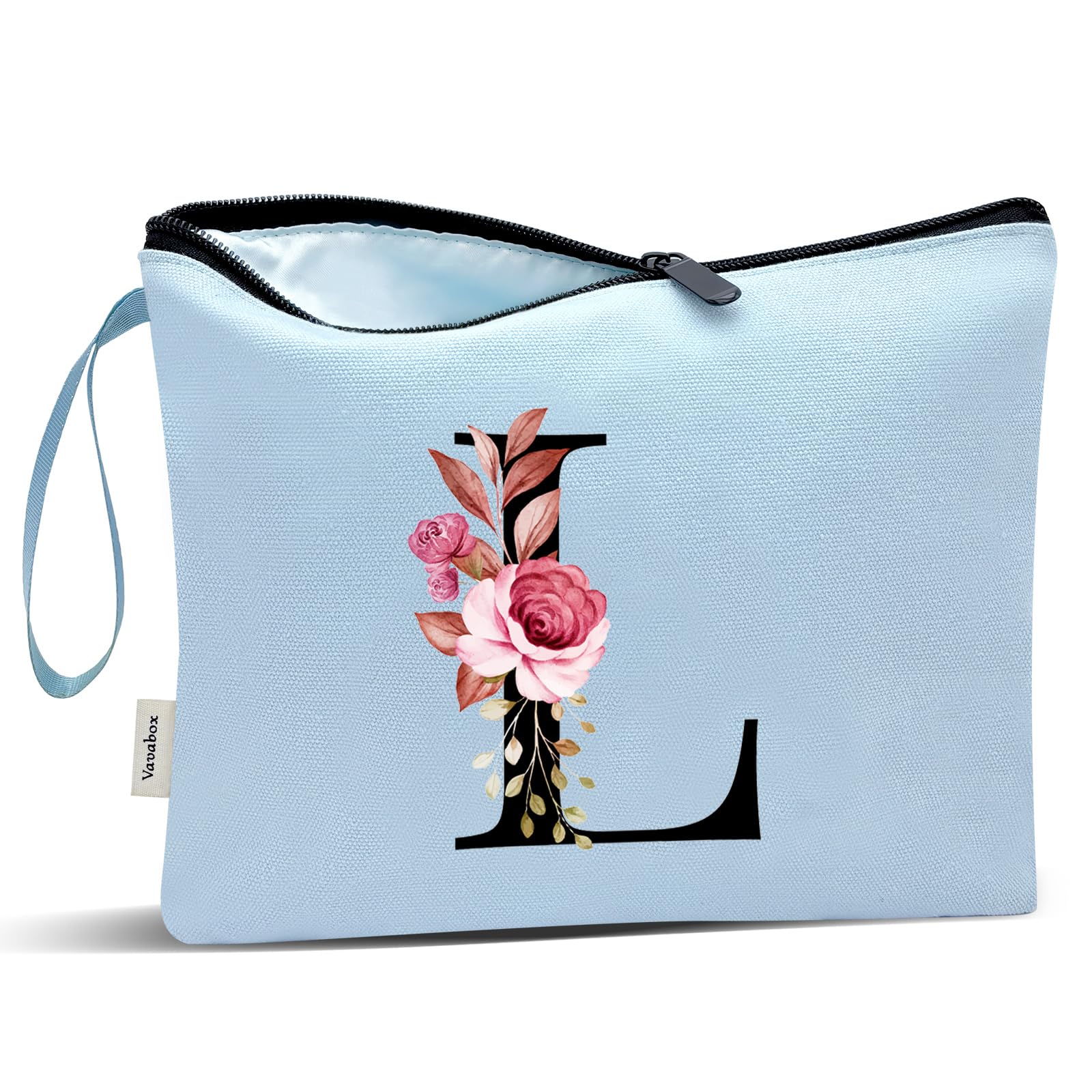 Vavabox A-Z Personalisierte Kosmetiktasche – Geburtstagsgeschenke für Frauen, Mütter, Beste Freundinnen und Brautjungfern (L, Blau)