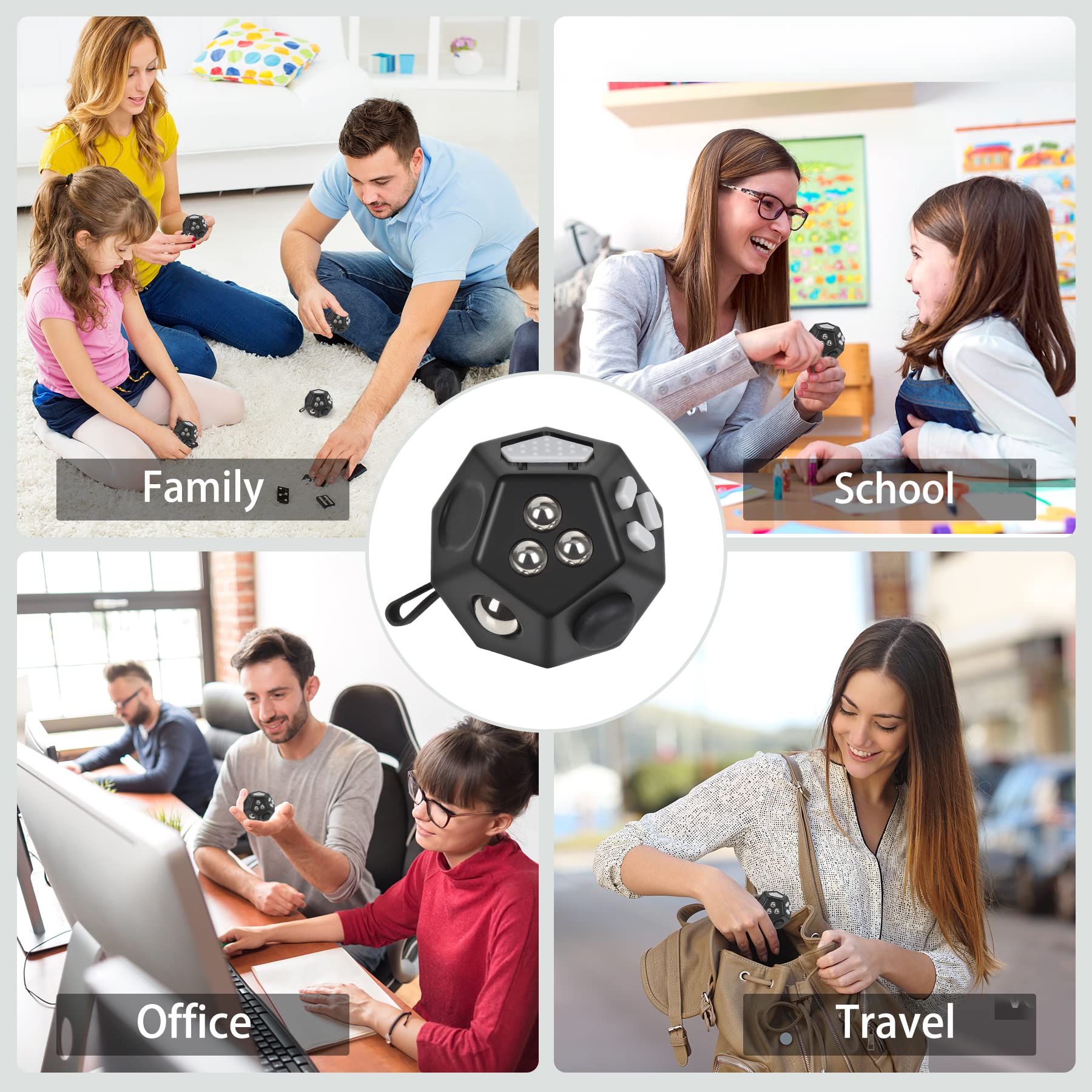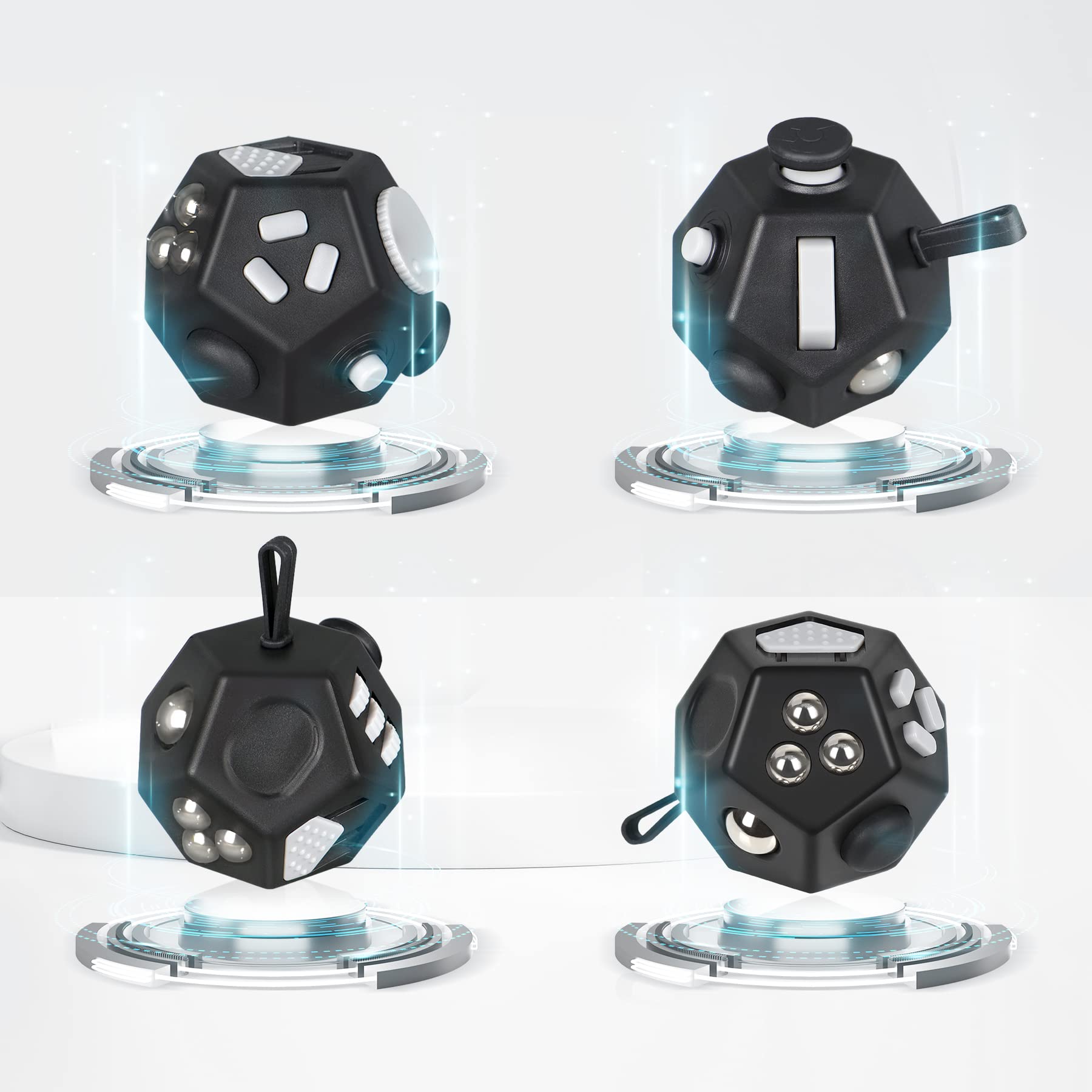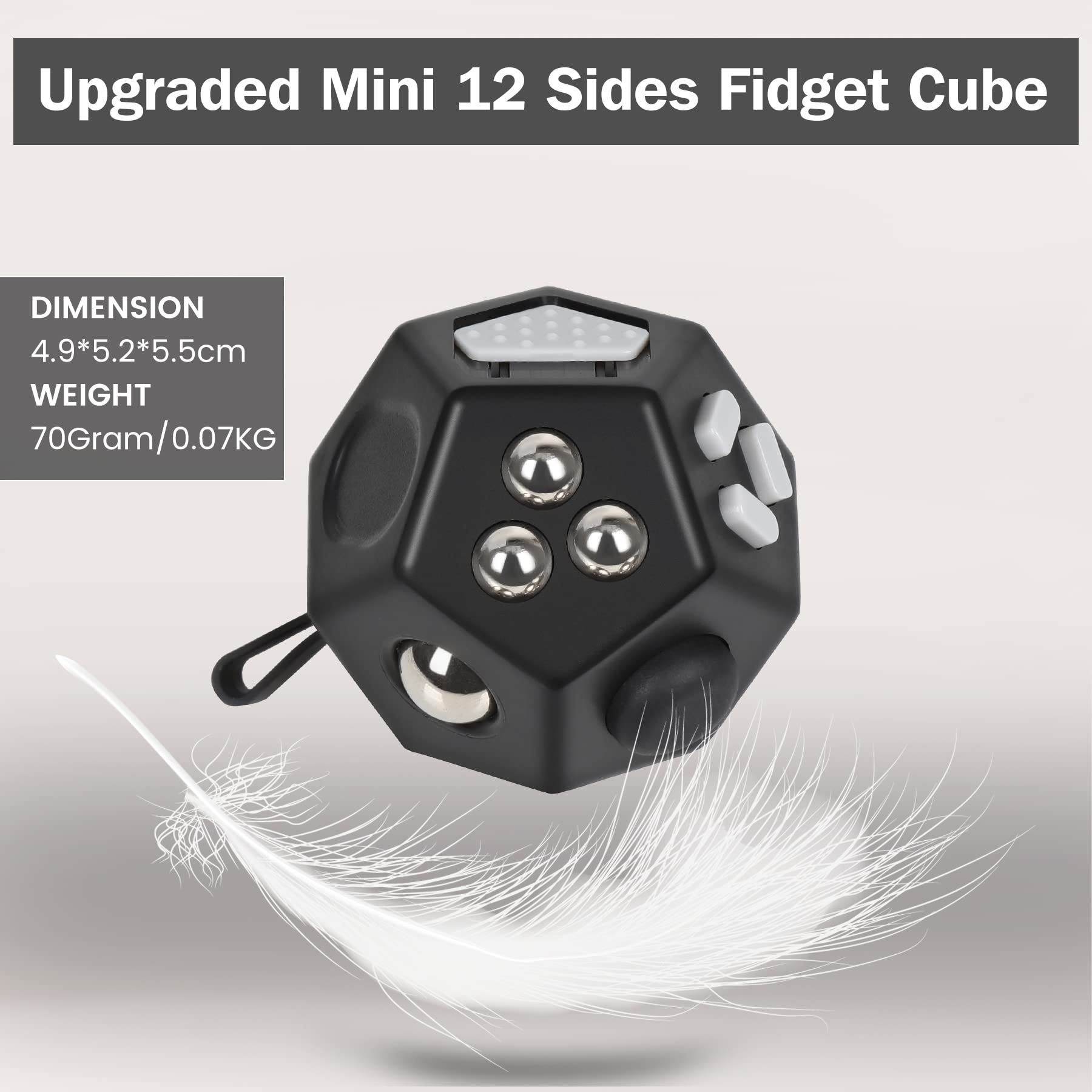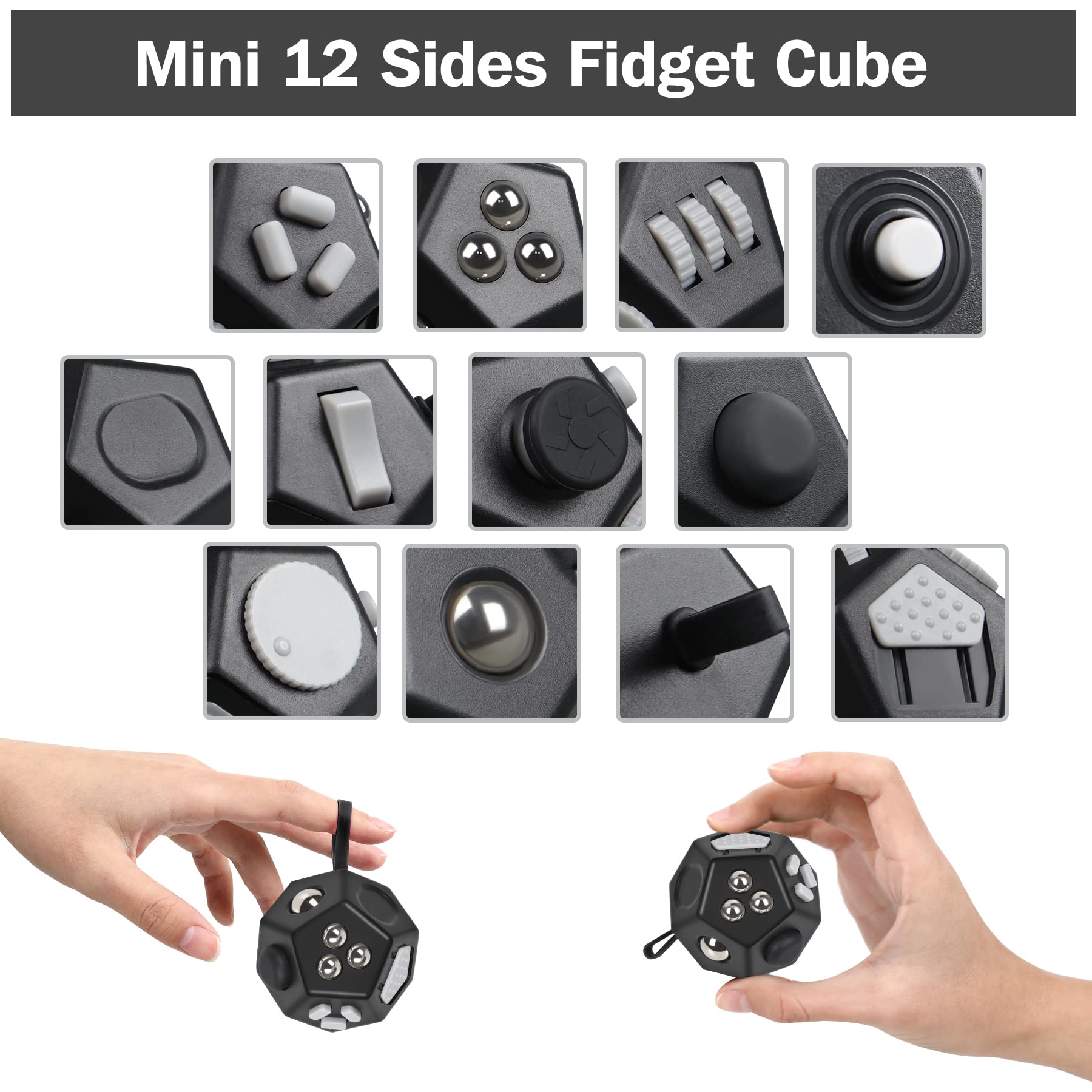 VCOSTORE Mini Fidget Stresswürfel Cube 12 Seiten, Angst Entlastung, Tragbares Anti Stress Spielzeug für Kinder und Erwachsene mit ADHS ADD OCD Autismus, Schwarz