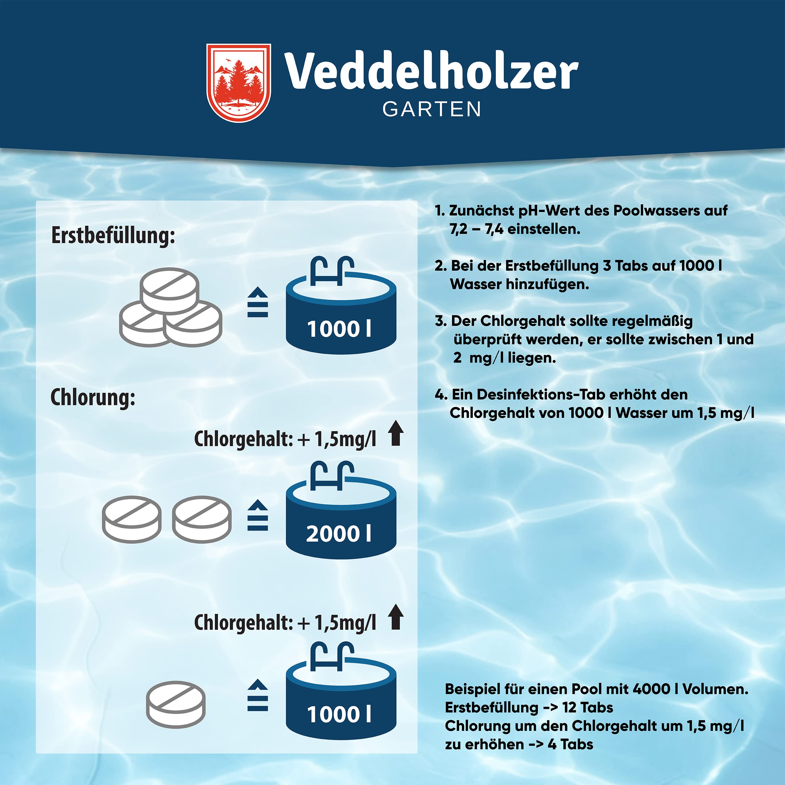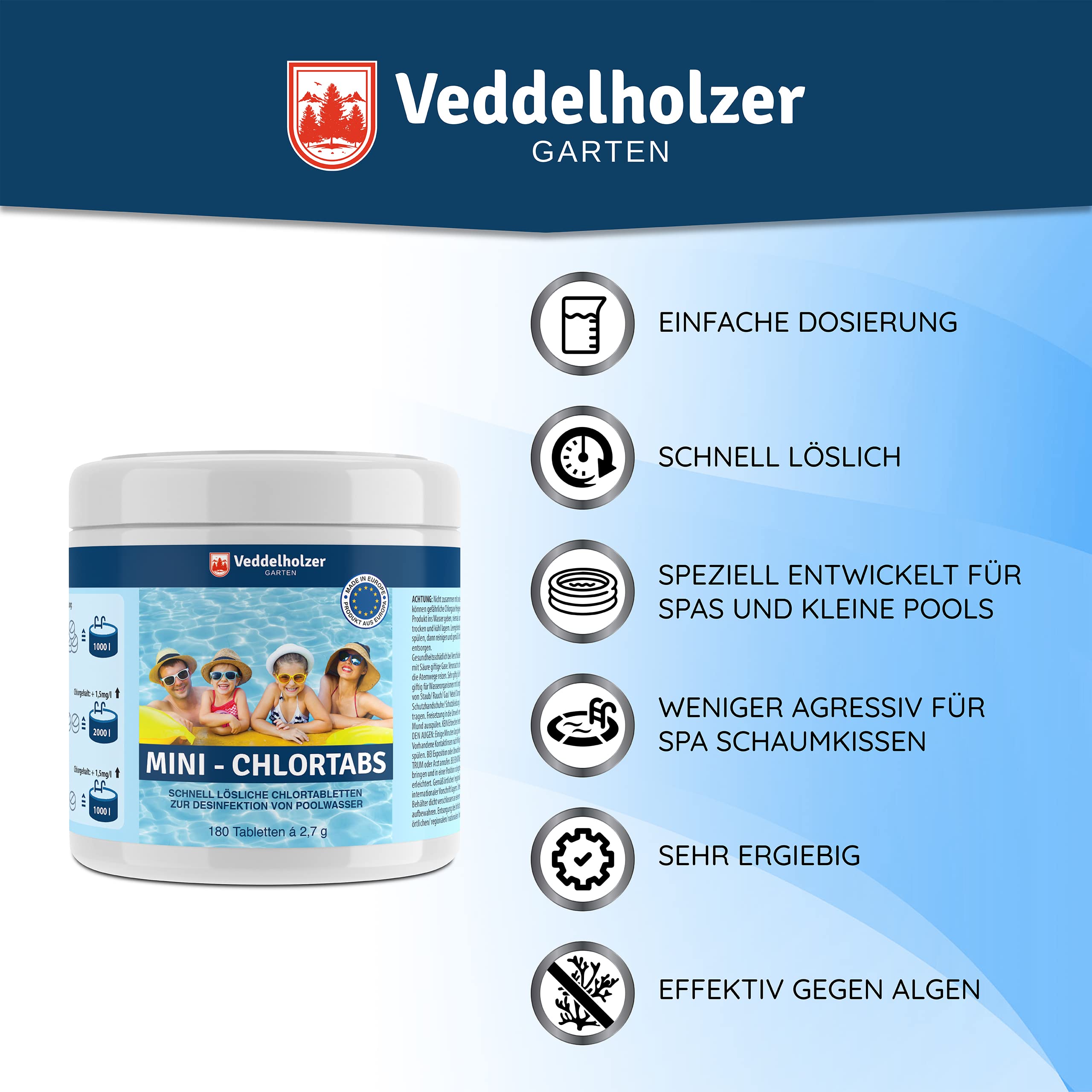 Veddelholzer 2 x 180 Mini Chlortabletten. Schnelllösliche Multitabs für Pool, Aufstellpool, Planschbecken, Gartenpool, Kinderpools & Whirlpool Wasserpflege. Pool Zubehör Poolreinigung & Desinfektion