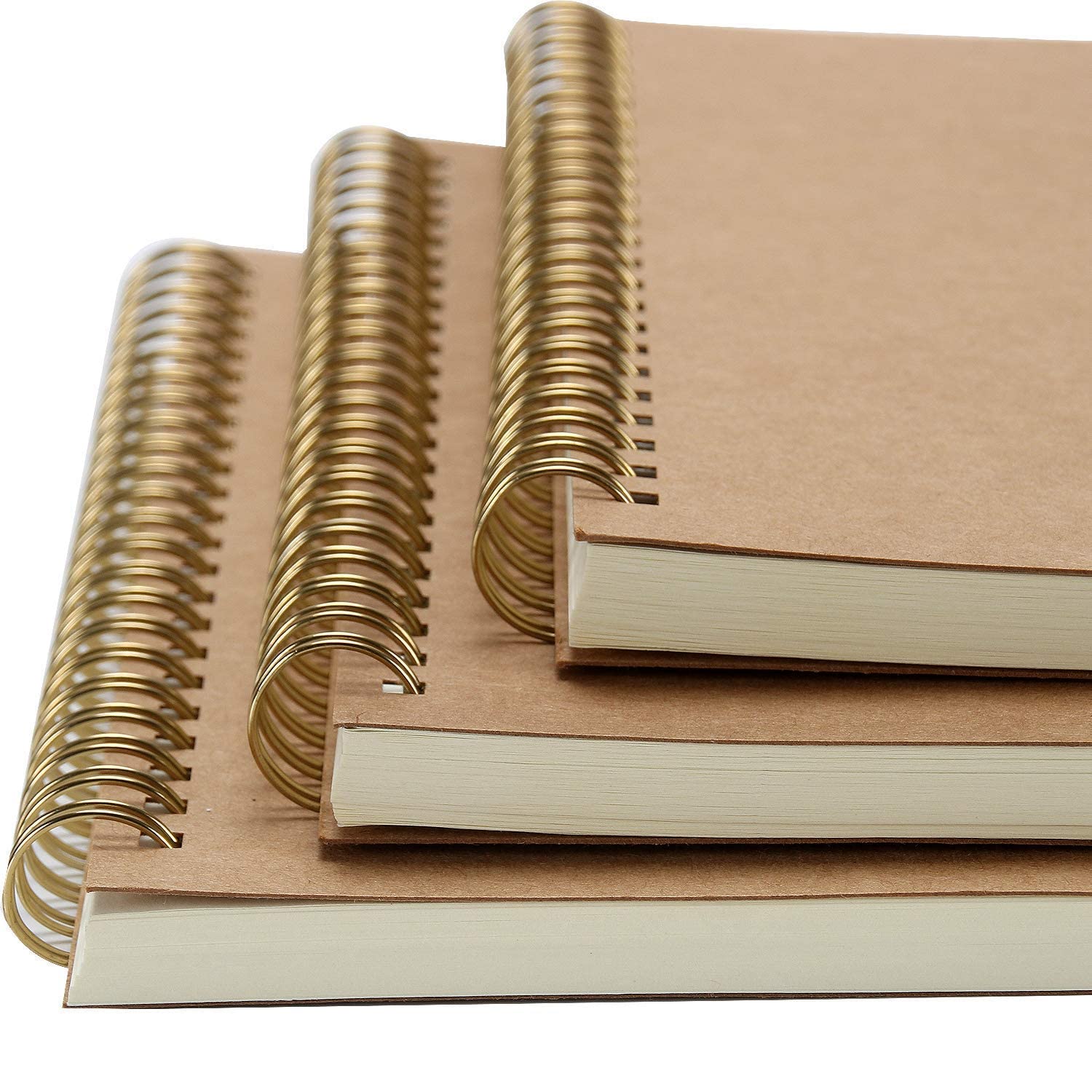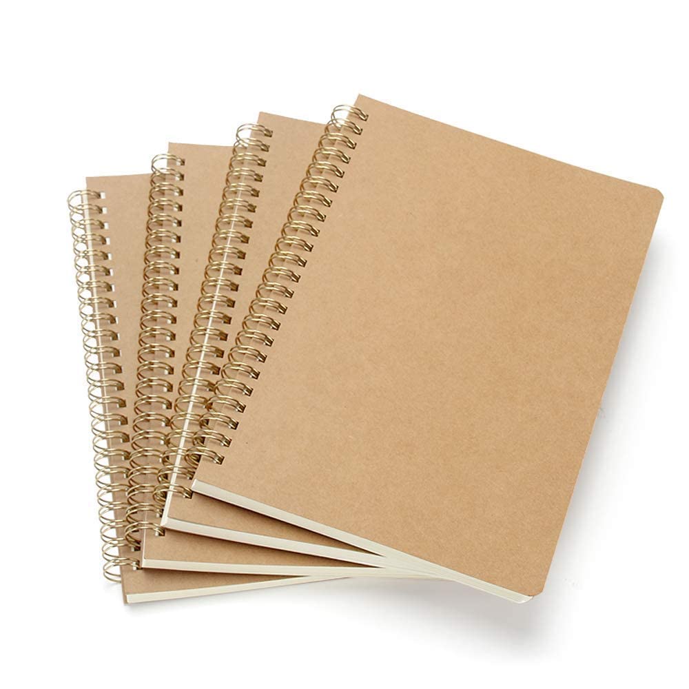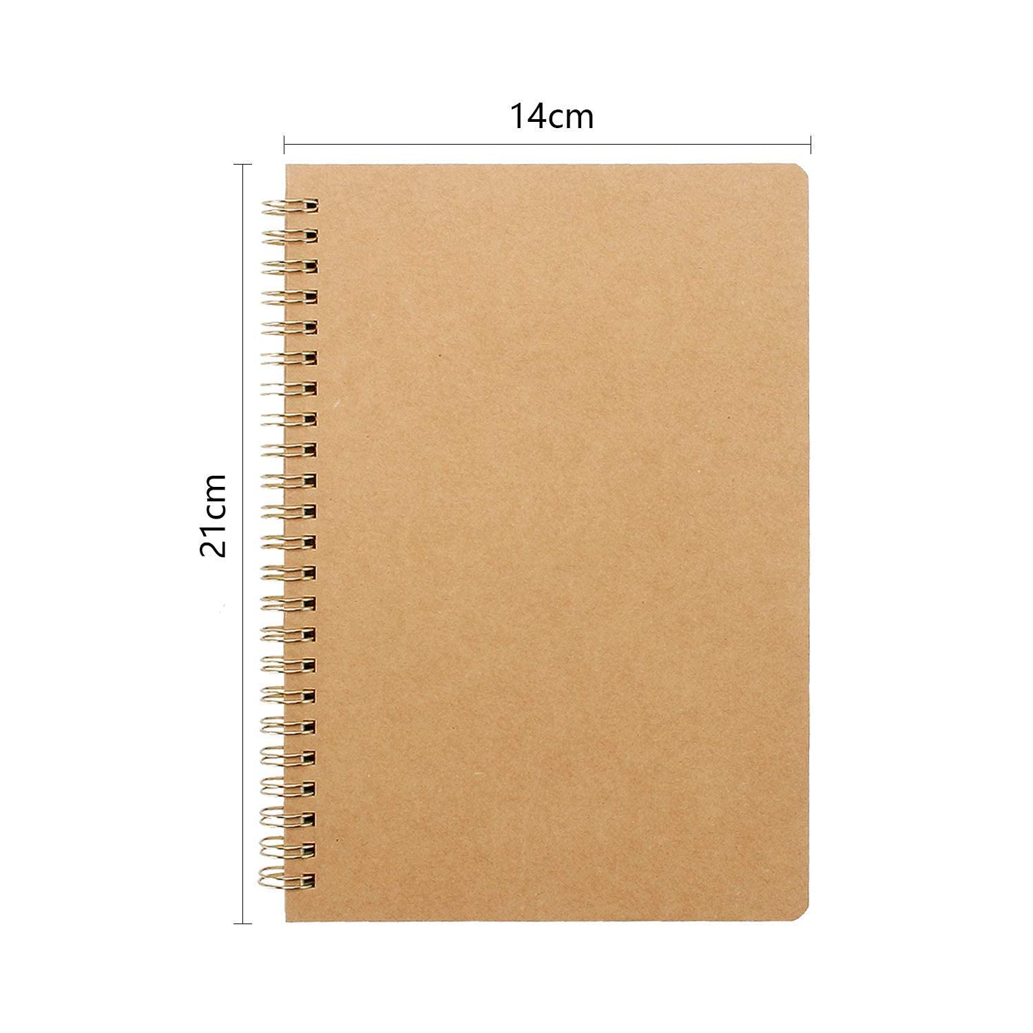 VEESUN 4 STK Notizbuch A5 Spirale Notizblock, Kraft Cover Leerseite (80 Blatt) Notizheft Skizzenblock, Classic Tagebuch Schreibblock Zeichenblock, Gut für Memos, Malen und Graffiti, MEHRWEG