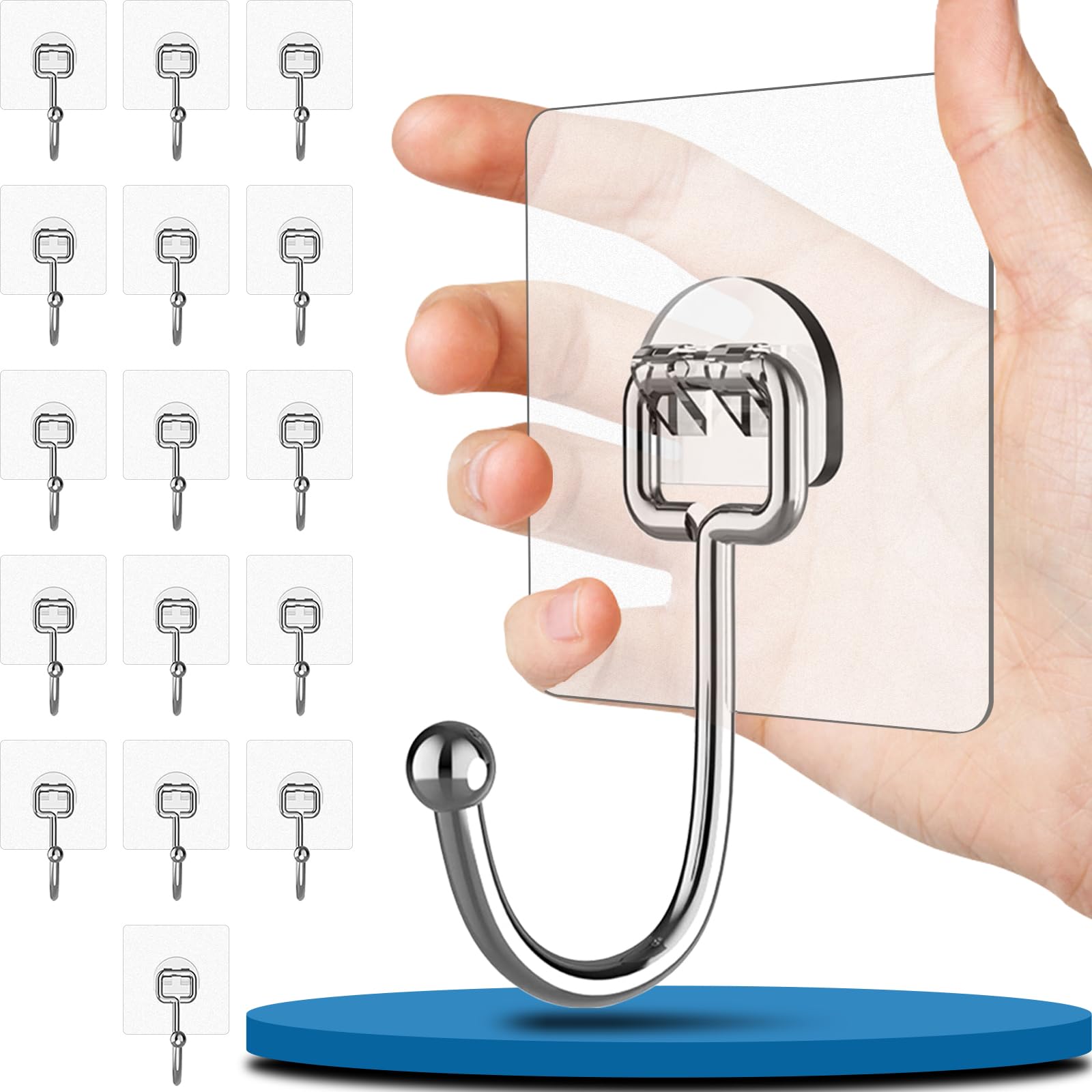 Vehepeay Selbstklebende Gross Haken 16 Stück(Max 20kg), Selbstklebend Haken für Bad, Küche und Wohnzimmer, Rostfreie selbstklebende Wandhaken, Starke Klebehaken für grosse Gegenstände